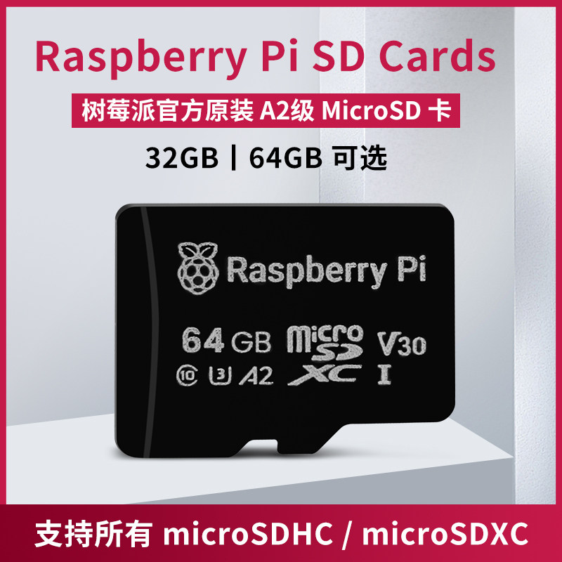 Cards树莓派4 5原装 MciroSD卡 Raspberry 64GB TF储存卡