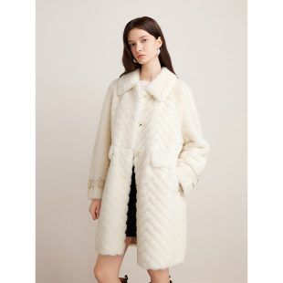 长款 法式 翻领保暖仿皮草大衣外套 冬季 Goodland美地女装
