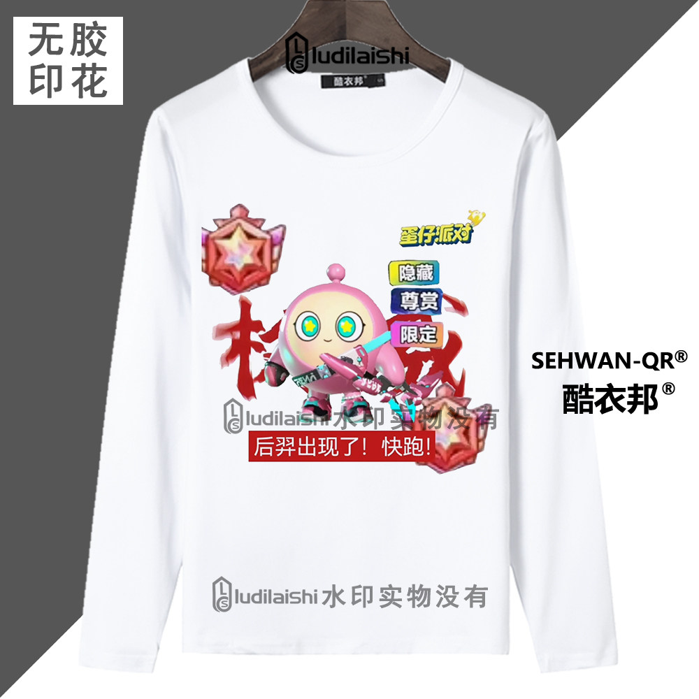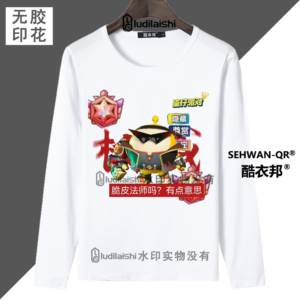 蛋仔超燃竞技场小黑小蓝权威周边春秋款 男女学生T恤上衣 圆领长袖