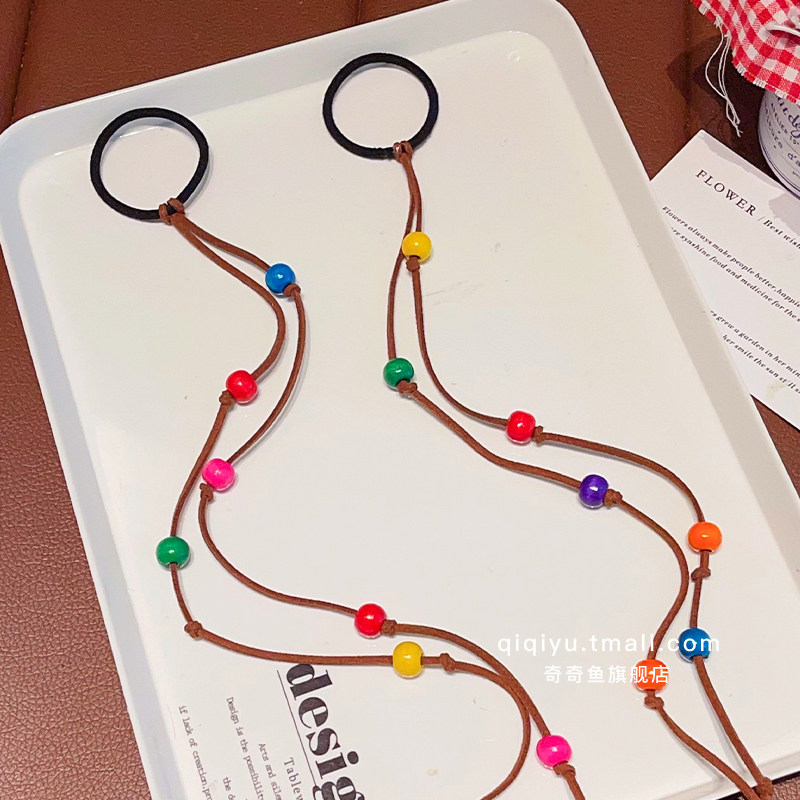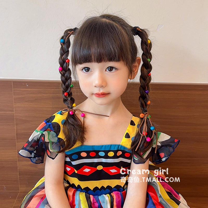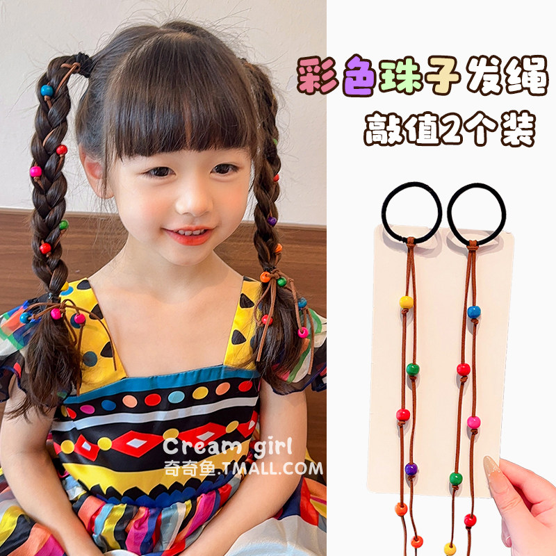 儿童民族风彩色串珠发圈辫发饰女童头绳皮筋扎马尾高弹力发绳头饰