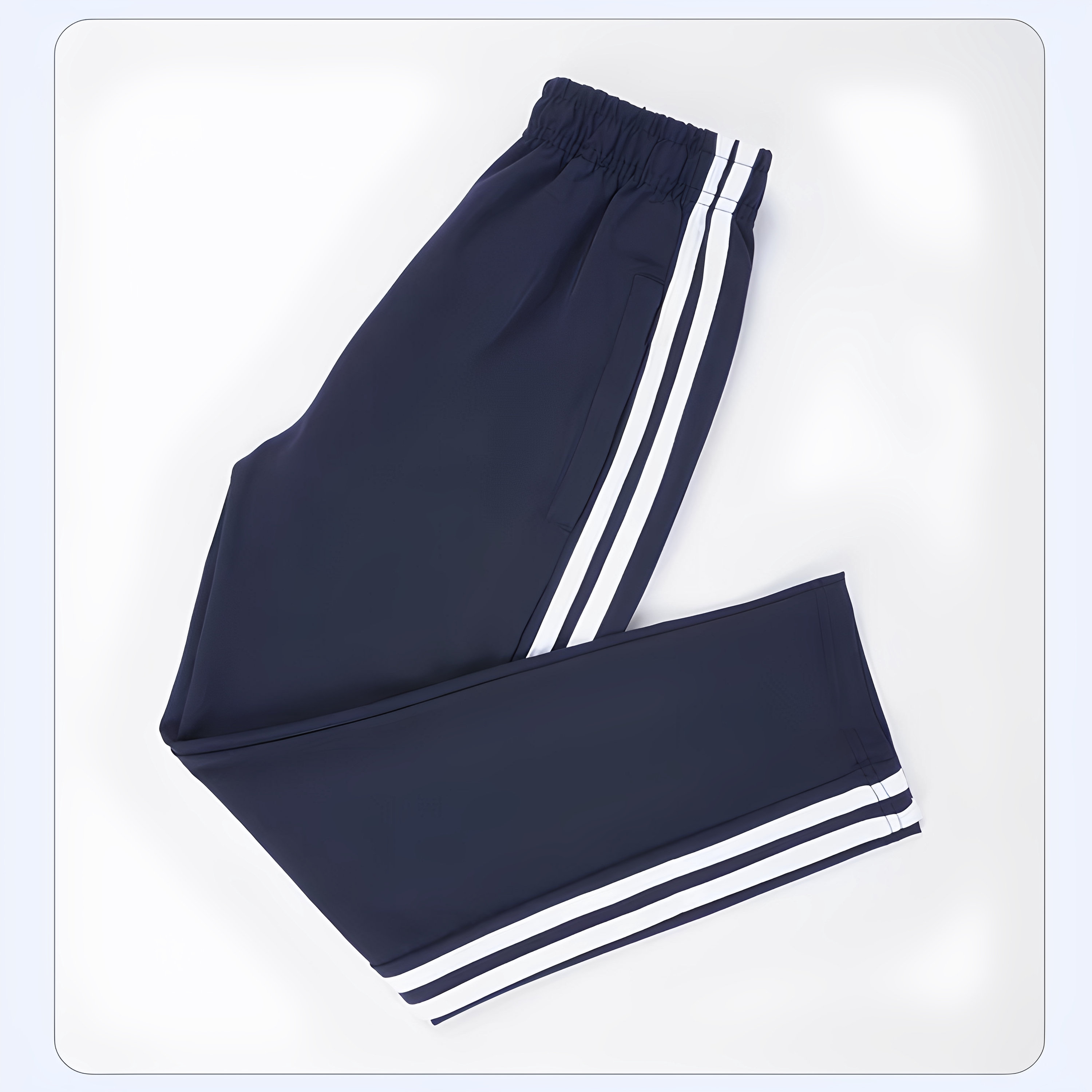 藏青色中小学生校裤 速干冰丝一条两道杠运动裤 薄 子夏季 纯棉校服裤