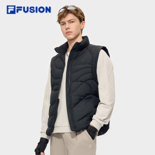 FILA 休闲基础保暖连帽外套 FUSION斐乐潮牌羽绒马甲男2025冬新款