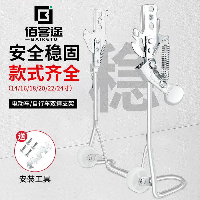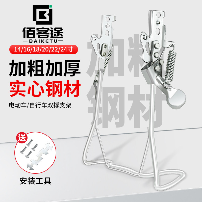 电动自行车脚撑车梯后支架双撑双孔双开通用加粗侧踢停车架电瓶车