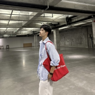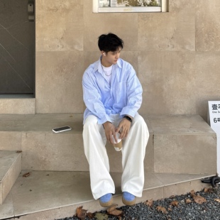 长袖 新款 假两件休闲衬衣学生外套 男2025秋季 飞型记蓝色条纹衬衫