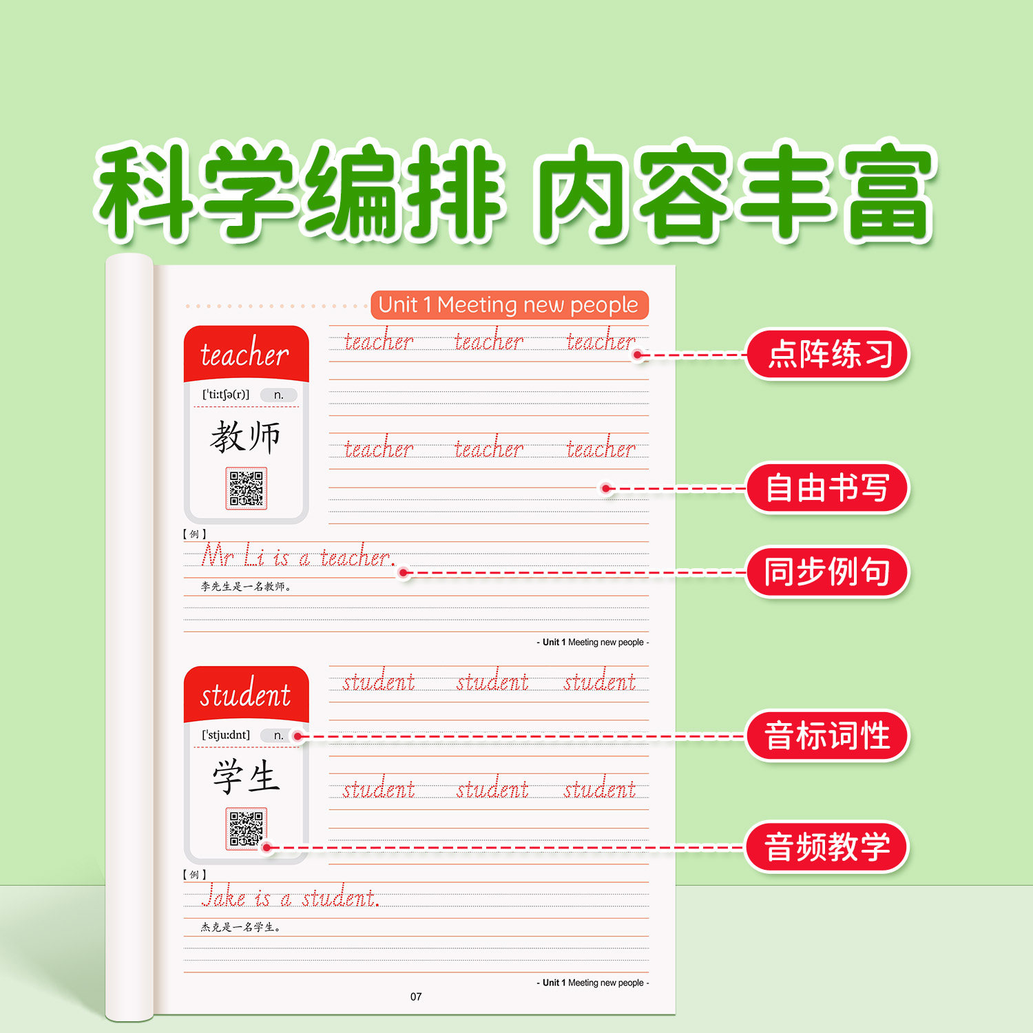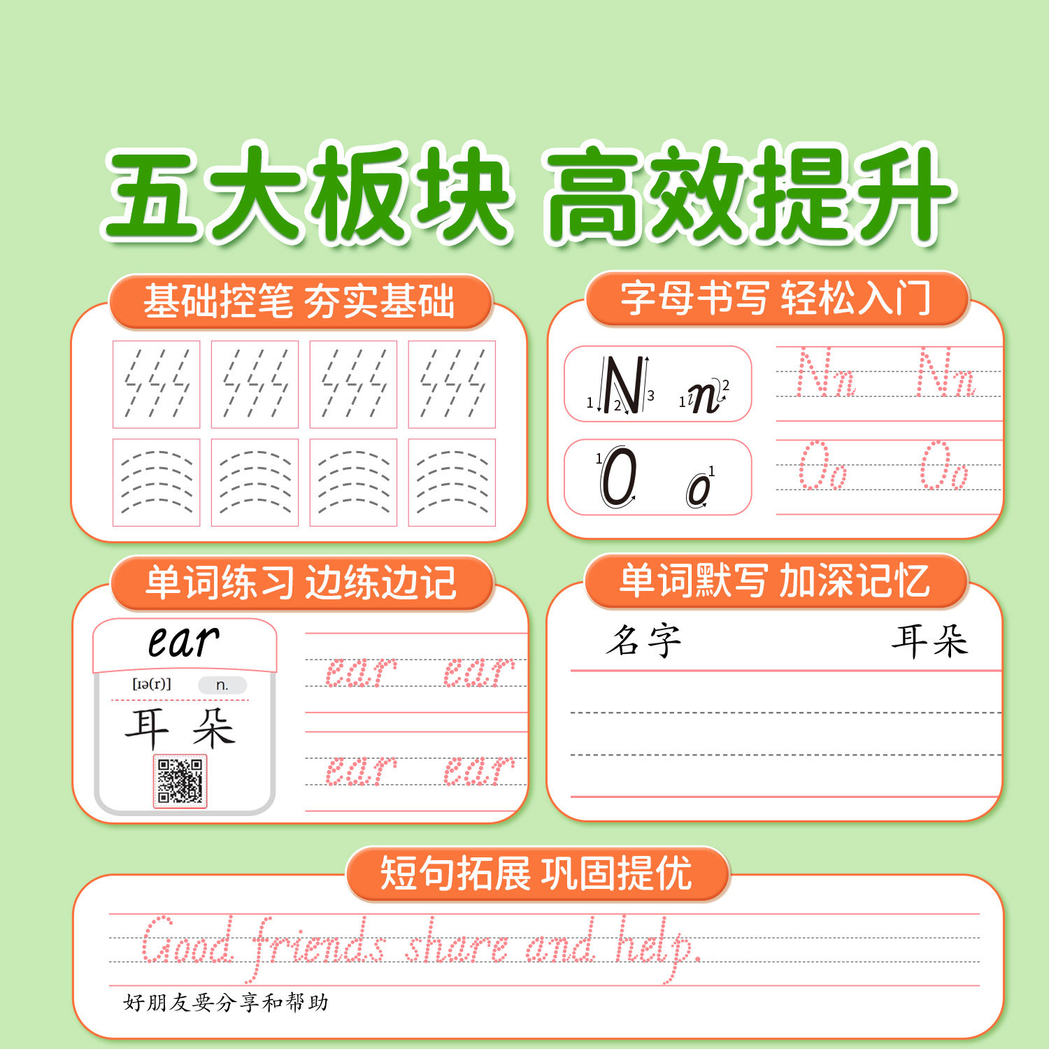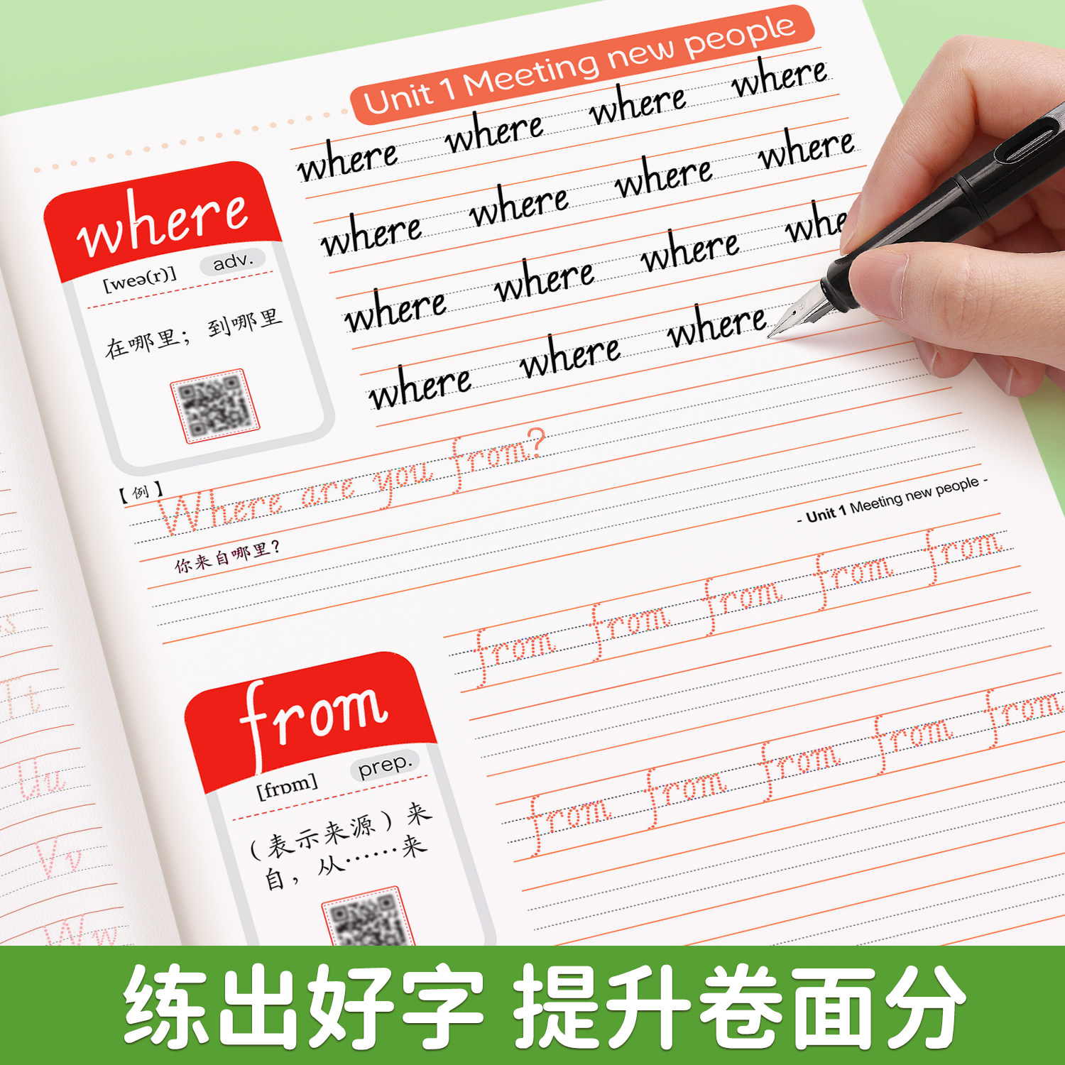 三年级英语字帖人教版 PEP上册下册四五六年级英语教材同步练字帖手写体小学生专用26个英文字母单词句子描红本3年级起点意大利斜体