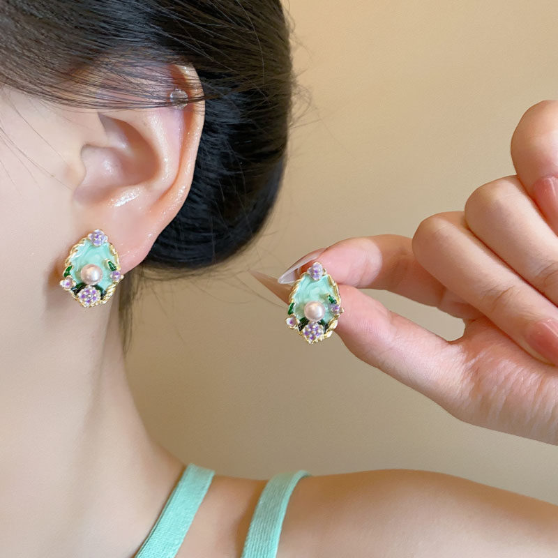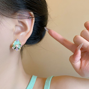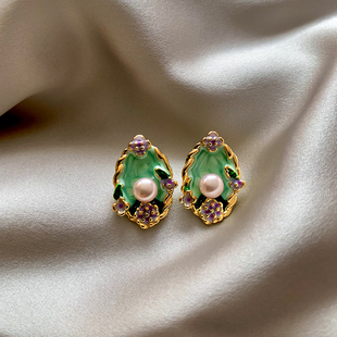 莫奈花园珍珠耳钉高级感轻奢油画耳环女气质百搭小众设计精致耳饰