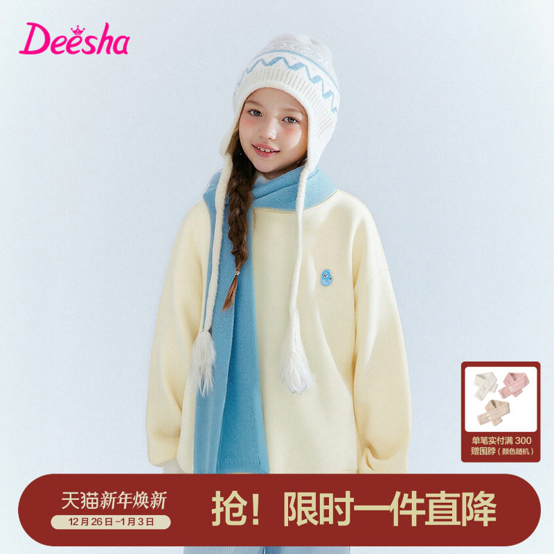 女孩儿童时尚 新款 保暖加厚上衣 女童加绒卫衣冬季 笛莎官方旗舰童装