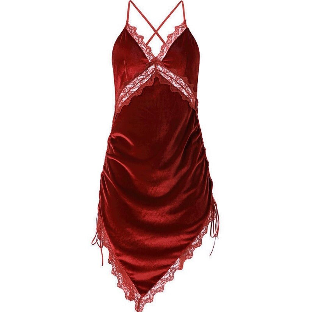 秋冬旗袍本命年丝绒女性感带胸垫蕾丝睡衣露背吊带睡裙家居服316