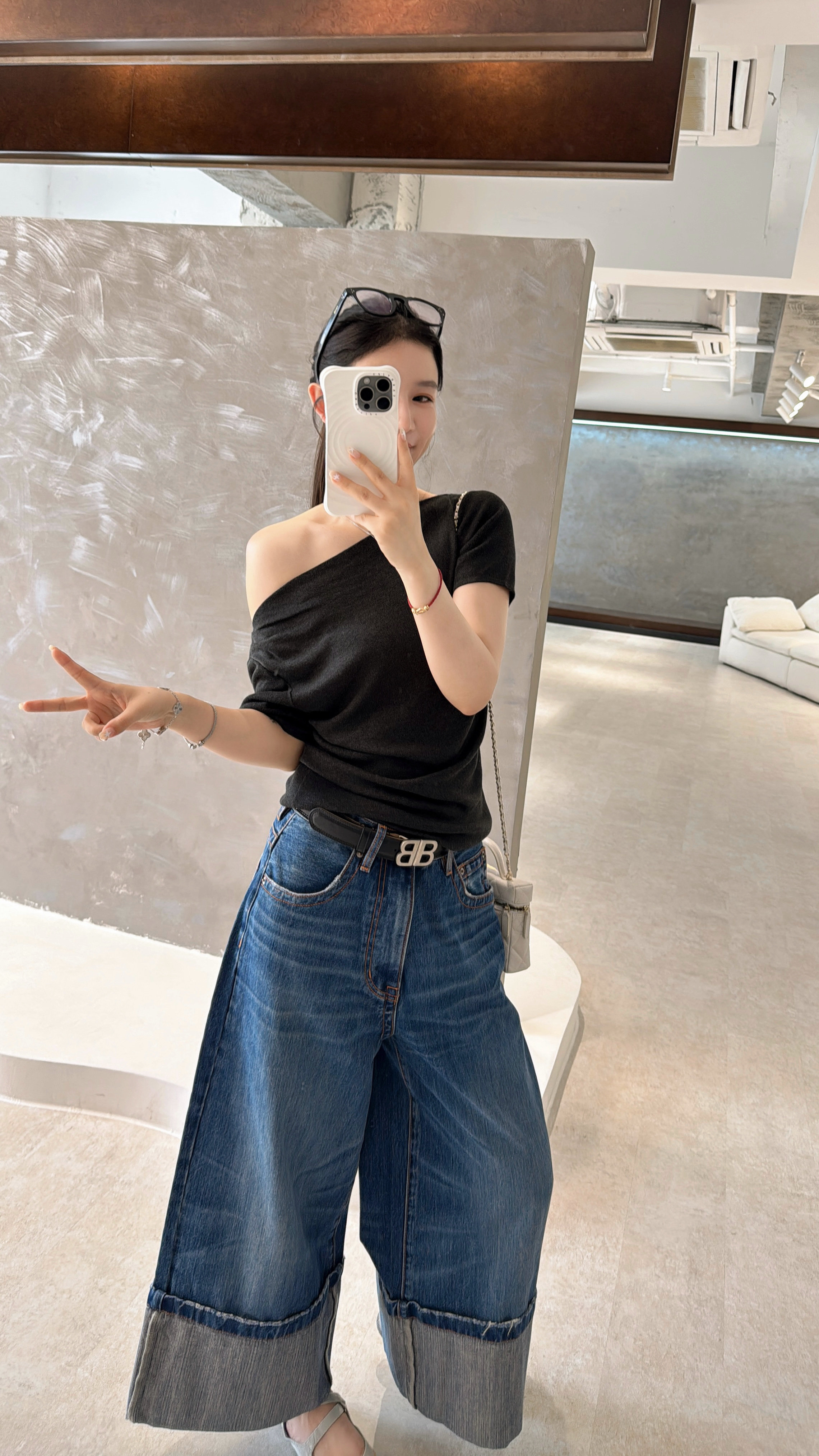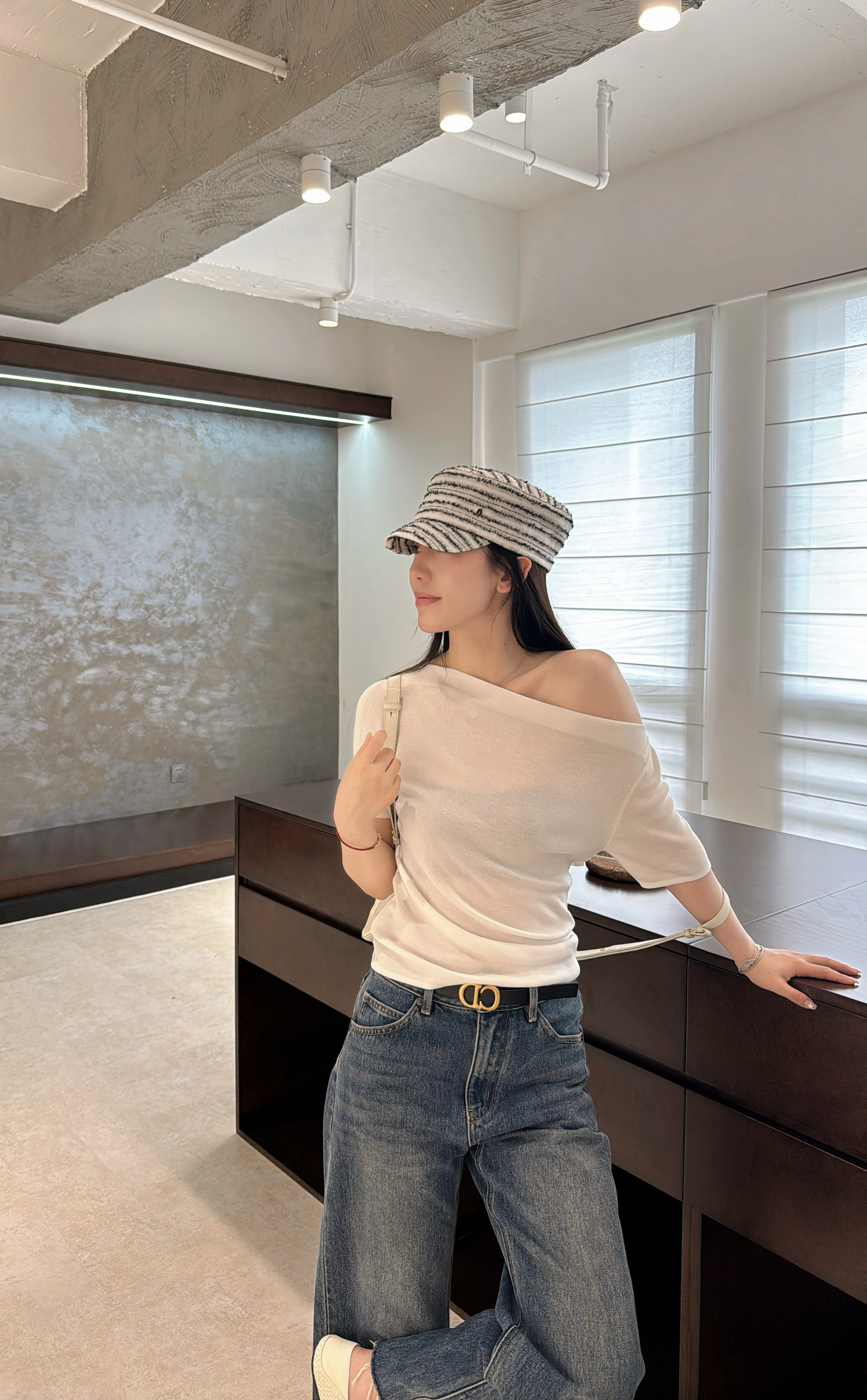 百搭一字肩短袖 时尚 T恤女宽松显瘦上衣 韩版 2025早春新款