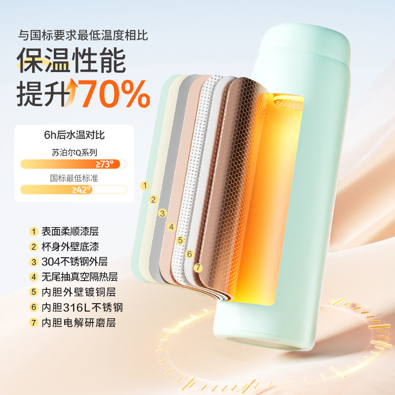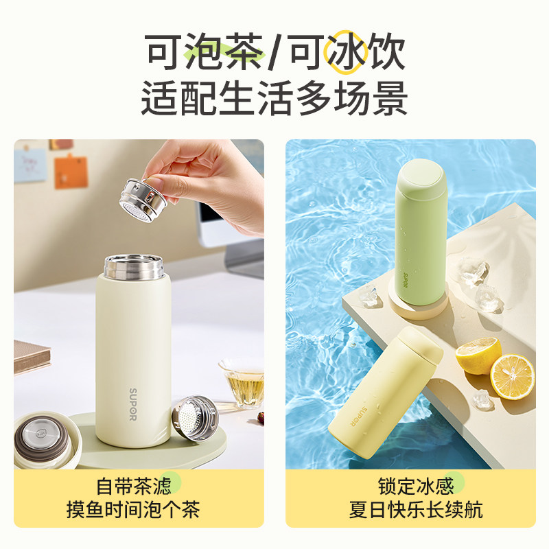 苏泊尔新款 保温杯女学生便携小少女心ins可爱水杯子316L不锈钢杯