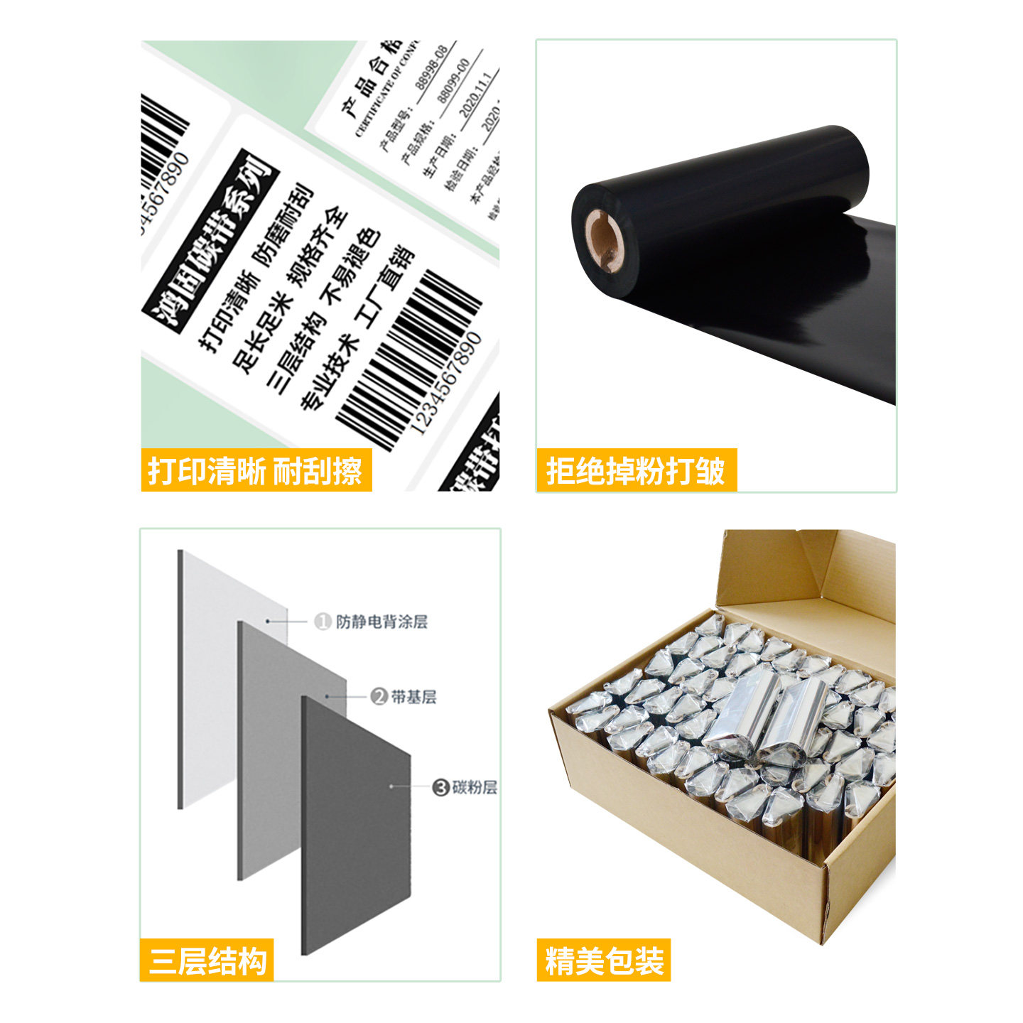 6070 100 打印机不干胶碳带热转印标签腊基碳纸色带卷 诚码 TSC条码 蜡基碳带卷混合基树脂水洗110×300m