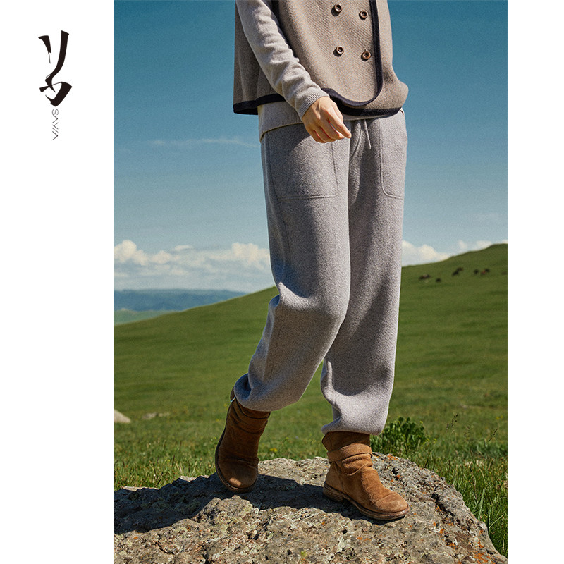 女款 neverme加绒直筒运动休闲裤 高腰长裤