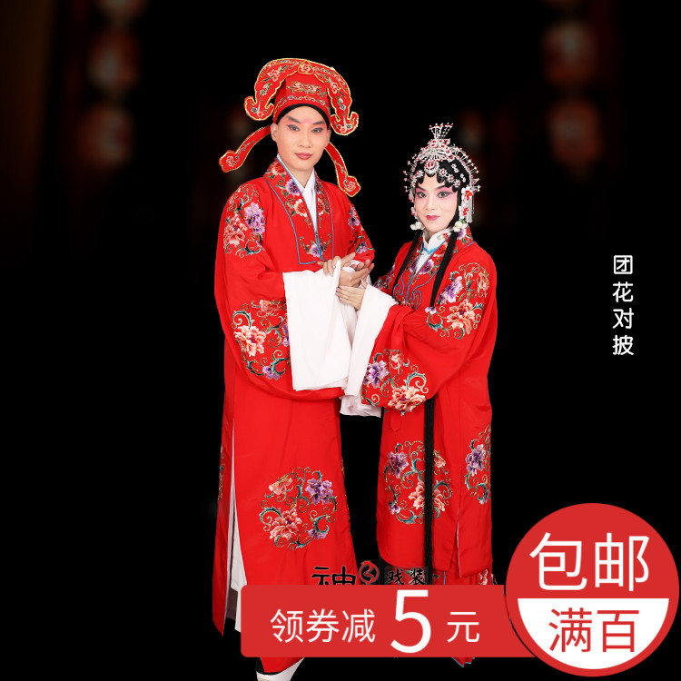 新郎娘拜堂戏服 结婚团花对披 戏曲古装 京剧越剧黄梅戏对领小生衣