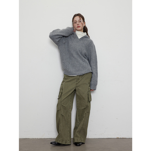 外套 慵懒风含绵羊毛针织衫 NEVERNEED亨利领套头毛衣男秋冬季 美式
