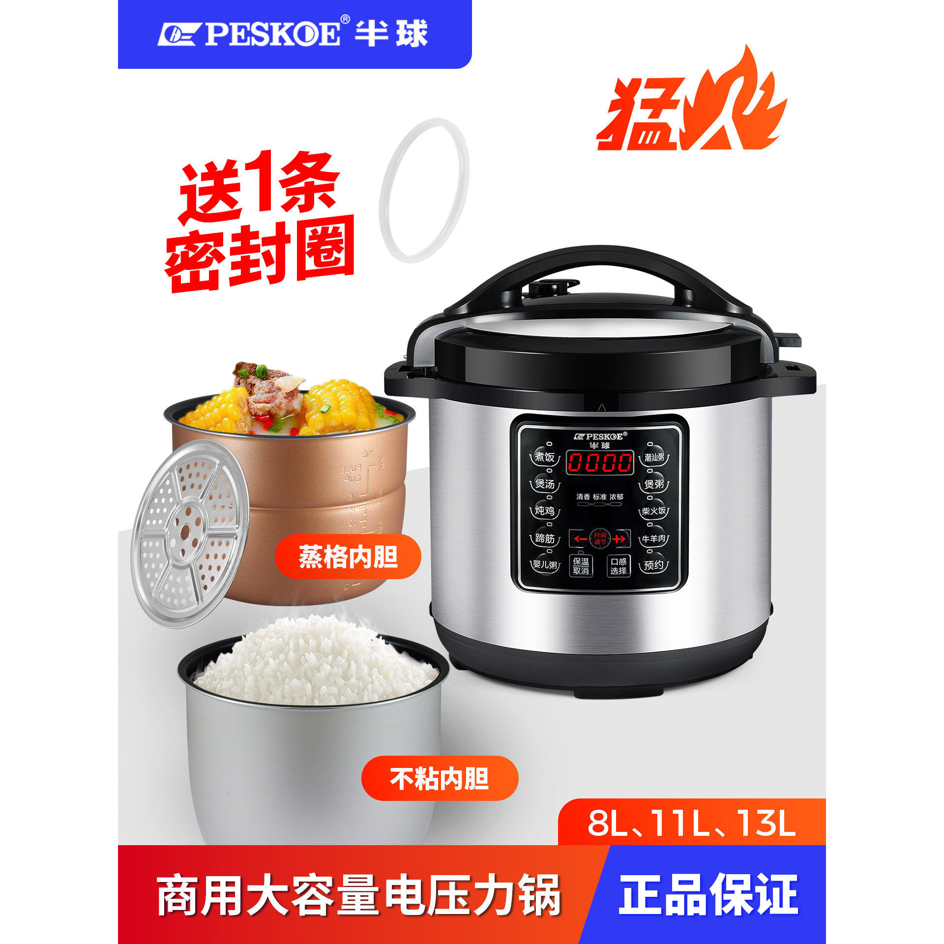 Peskoe A07D80电压力锅304不锈钢商用大容量多功能8L11L13升 半球