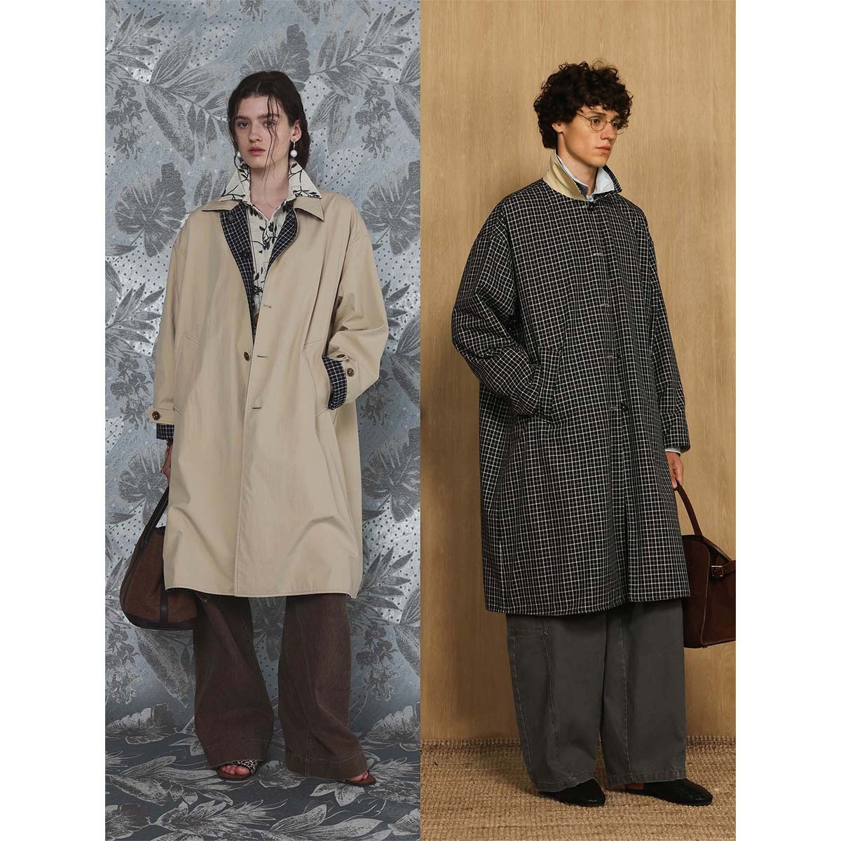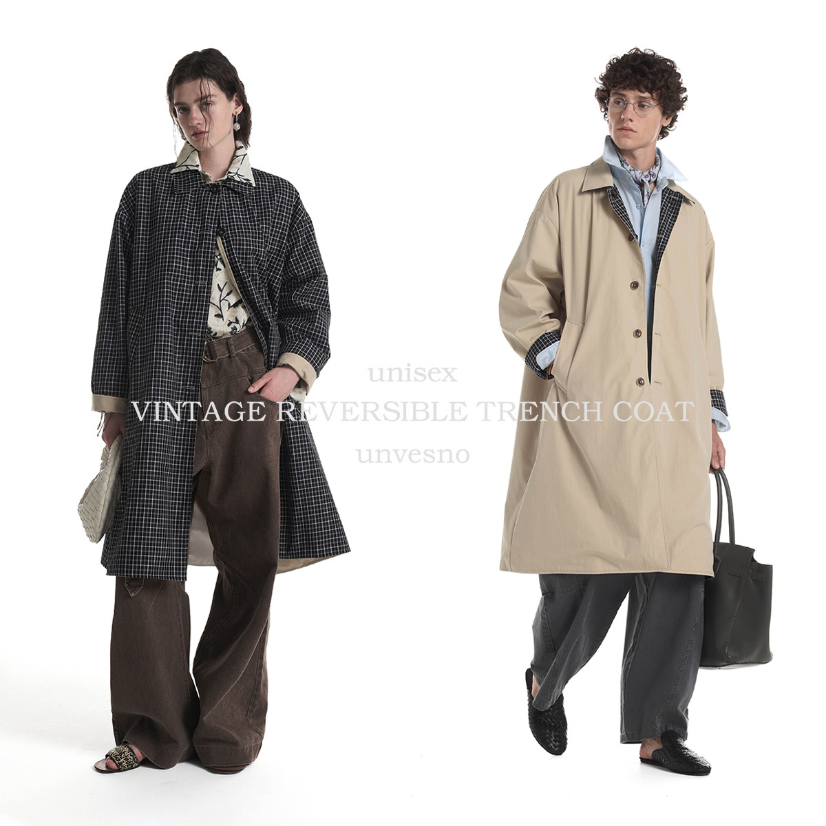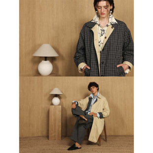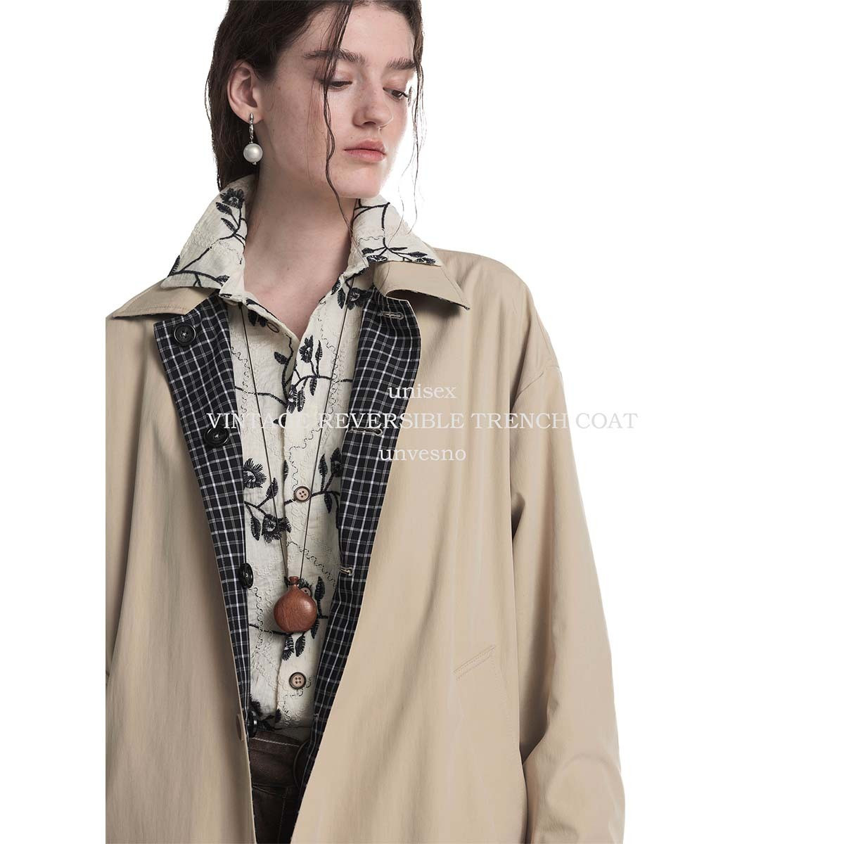 Miu风复古格纹宽松廓形长款 Unvesno 风衣外套秋季 双面穿