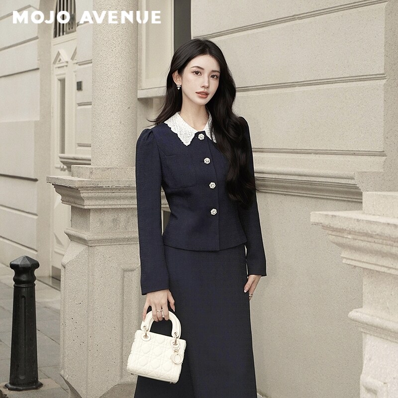 简约通勤蕾丝拼接短外套长 玛德琳法式 MOJO AVENUE莫佐2025秋新款