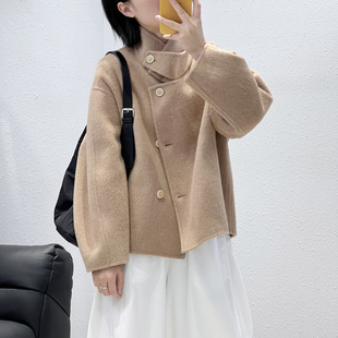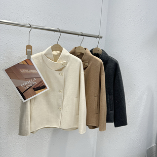 ROY11 黑色立领短大衣女冬辣妹高级感气质束腰毛呢外套 先锋模范