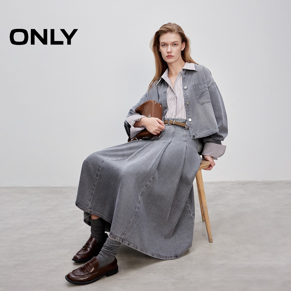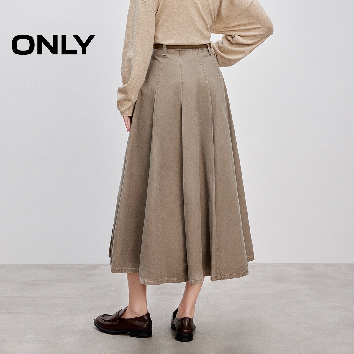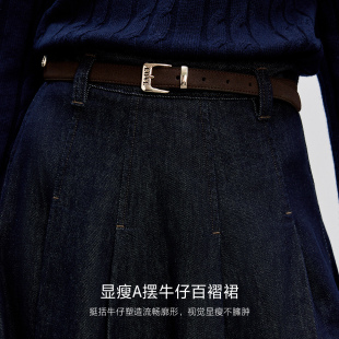 挺括牛仔面料设计高腰A字百褶裙长裙半身裙女 春款 ONLY奥莱