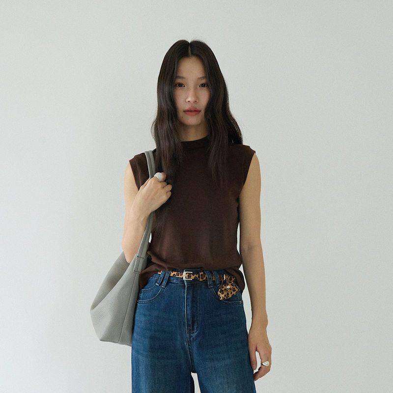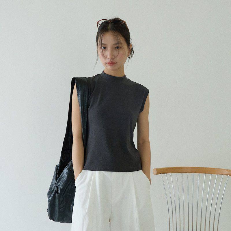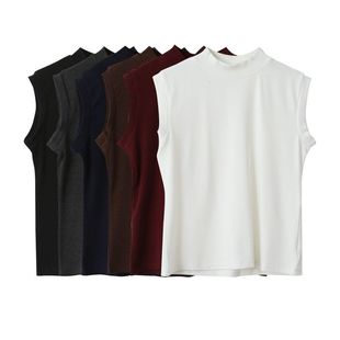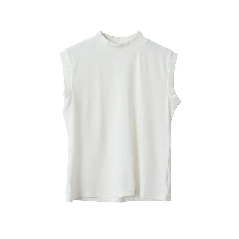 版 强明女装 型高圆领无袖 显瘦上衣3111 T恤初秋新款 超柔软打底修身