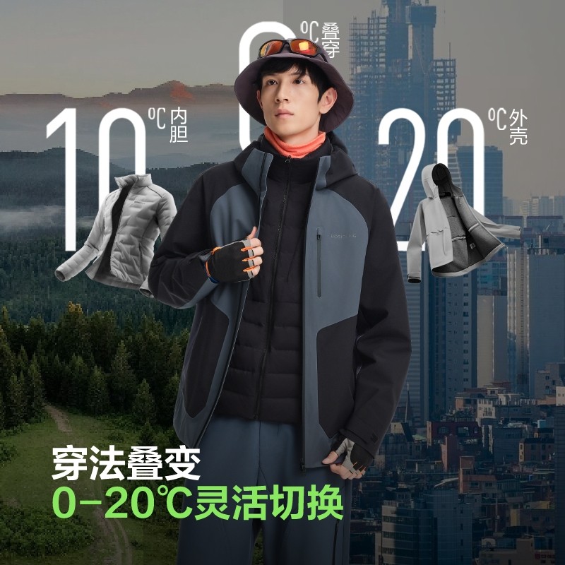 女三合一冲锋衣鹅绒服90绒连帽防风雨户外 波司登25秋新款 叠变