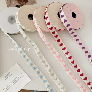 ins浪漫爱心刺绣丝带节日礼物装 饰布艺织带DIY辅料蛋糕打包绳多色