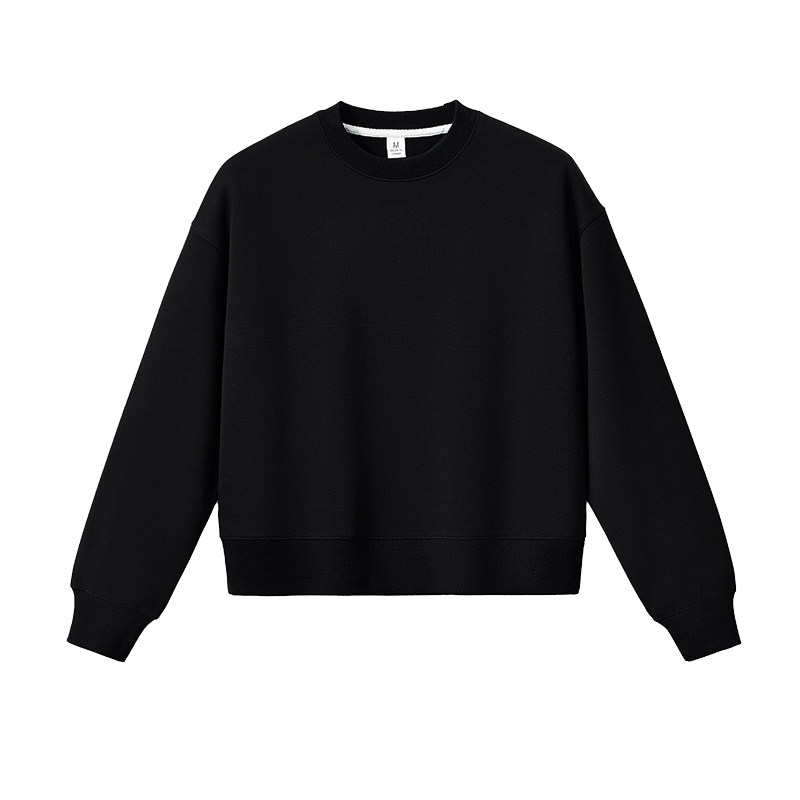 上衣冬 秋冬无帽圆领舒适宽松短款 冬季 黑色加绒卫衣女加厚2025新款