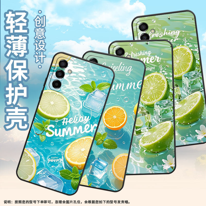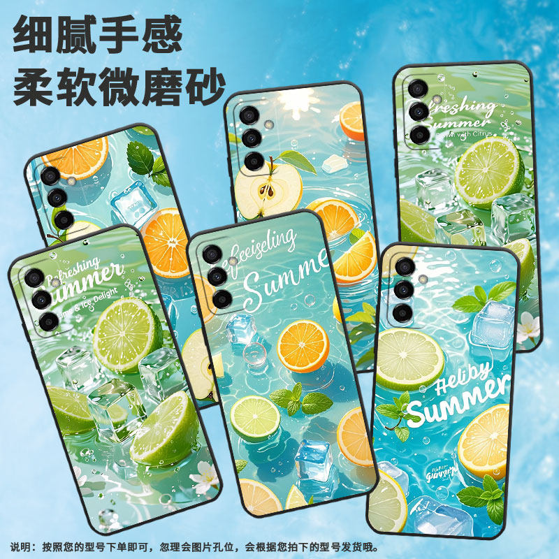 适用三星M02手机壳M04夏日水果SM M145F黑色M20硅胶M21s保护套 M105F全包边samsungM12磨砂壳M13防摔爆SM