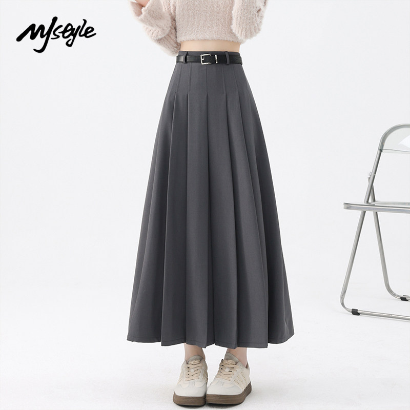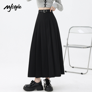a字裙高腰小个子半身裙 百褶裙女2025秋冬新款 STYLE黑色西装