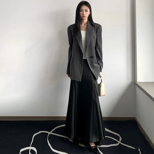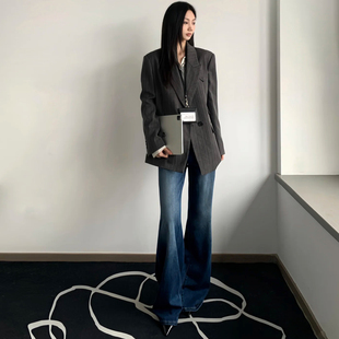 小个子宽松显瘦气质休闲西服潮 外套女春秋新款 法式 复古竖条纹西装
