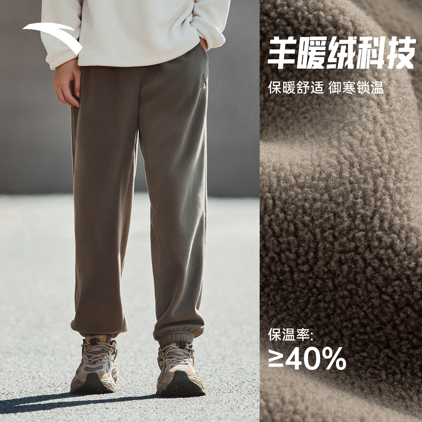 宽松加绒加厚束脚卫裤 安踏摇粒绒双面抓绒长裤 新款 2025冬季 子 男裤