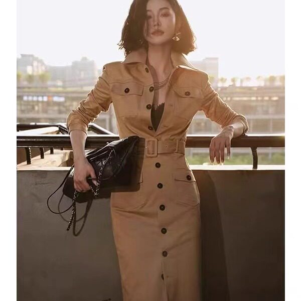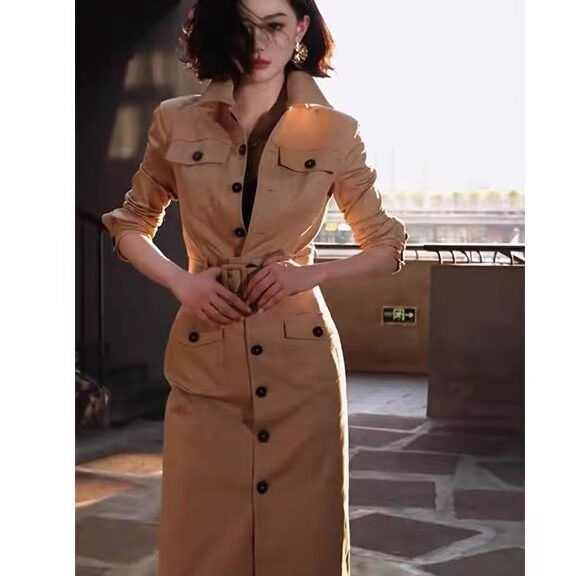 高质感穿搭大方得体绝美气质收腰卡其色风衣衬衫 连衣裙女2025秋季