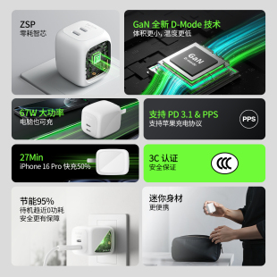 Belkin贝尔金67w双口Typec充电器氮化镓快充 ZSP零耗智芯充电头适用苹果16手机iphone17promax笔记本电脑iPad