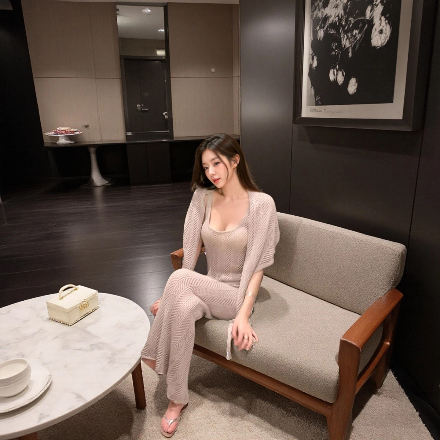 无袖 法式 女夏2025新款 套装 百搭上衣披肩半身裙三件套 名媛针织时尚