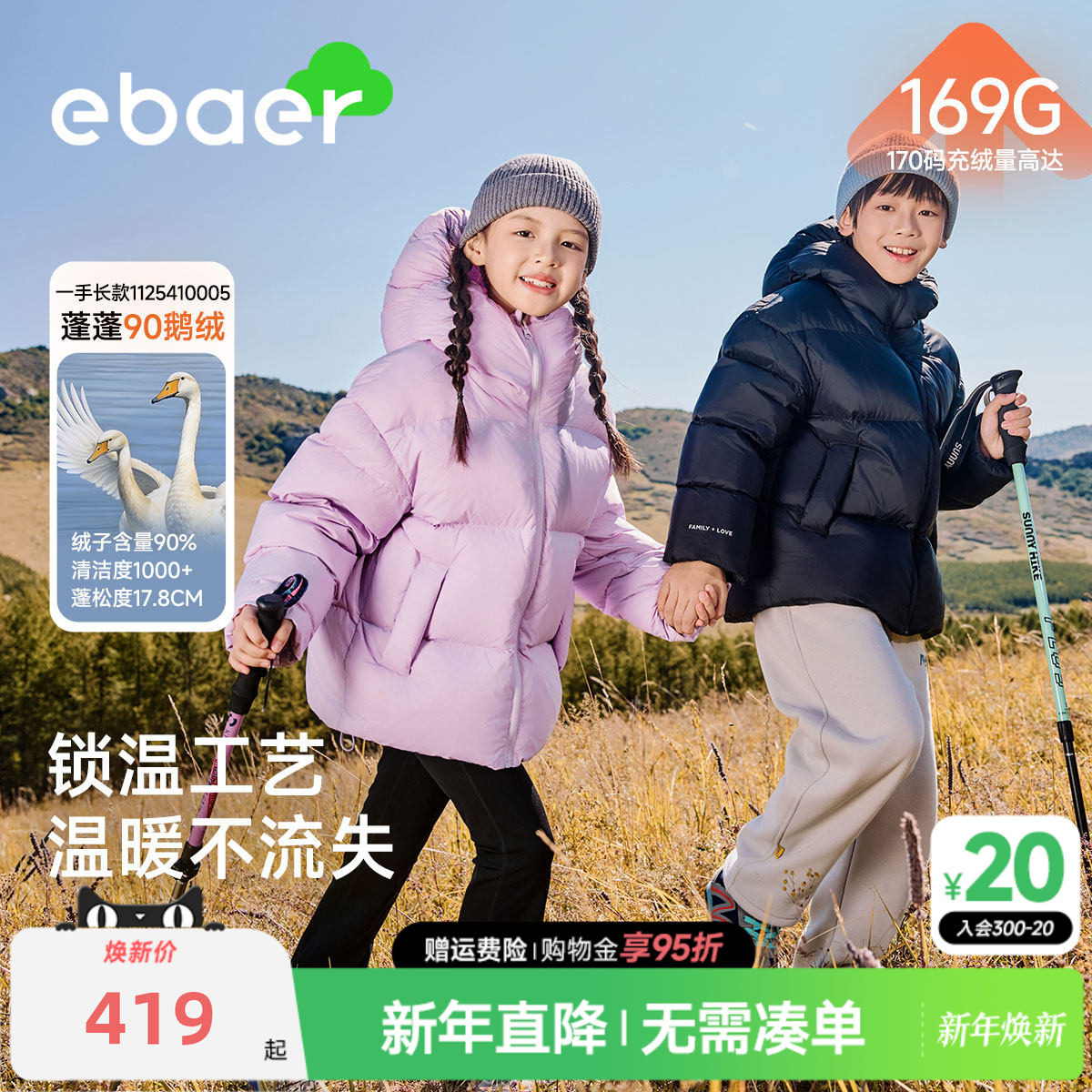 男女童保暖鹅绒外套加厚连帽冬装 EBAER儿童鹅绒服2025冬季 新款