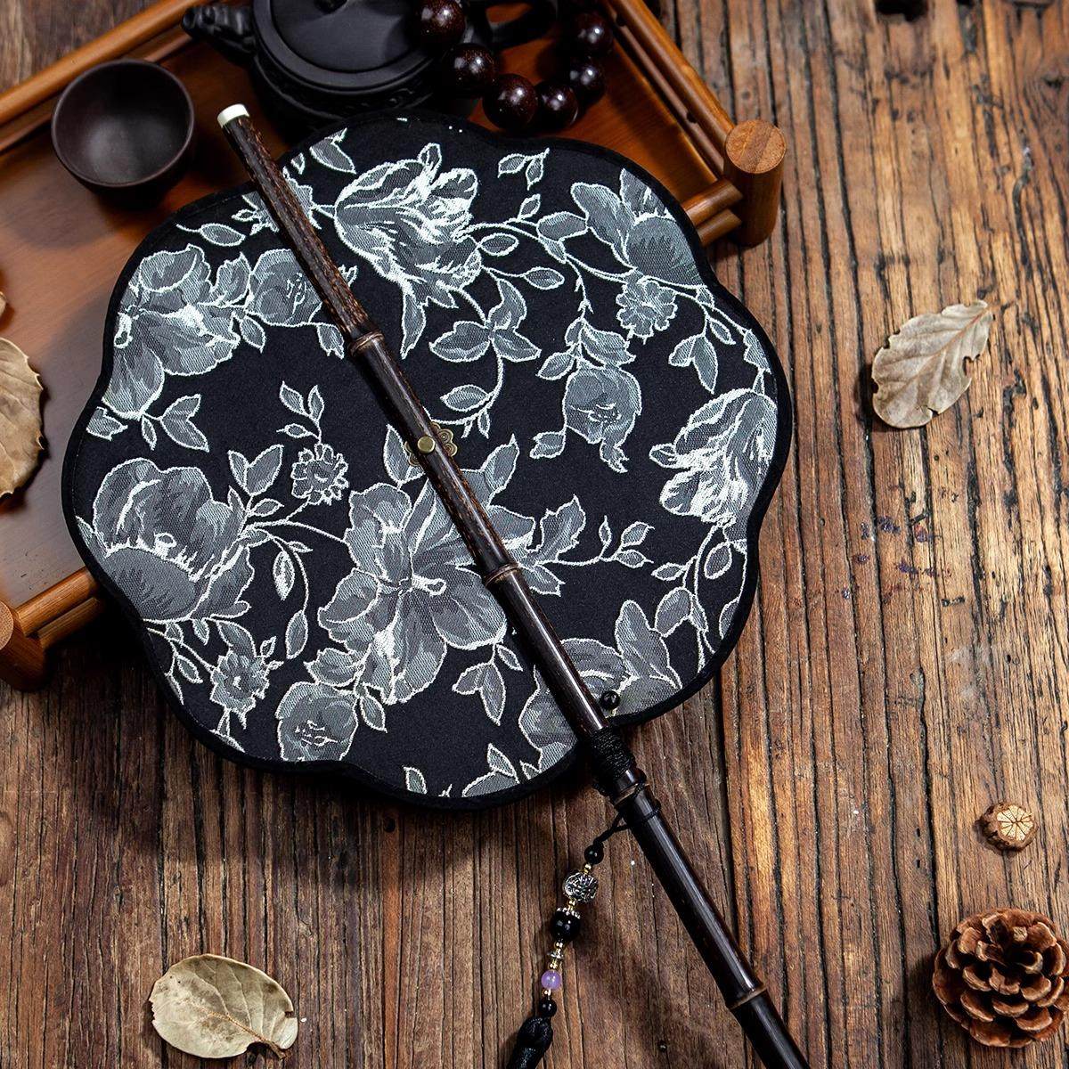 儿童汉服扇子团扇女童走秀拍摄长柄扇舞蹈绣花古风宫扇六一活动扇