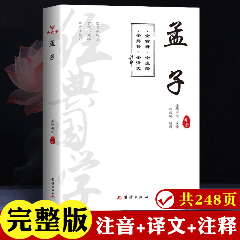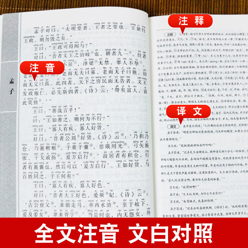 书籍 无删减完整版 孟子译注注音版 全集正版 原文注释译文中小学生课外阅读大学中庸论语诗经楚辞四书五经 孟子国学经典 儒家 全注音版