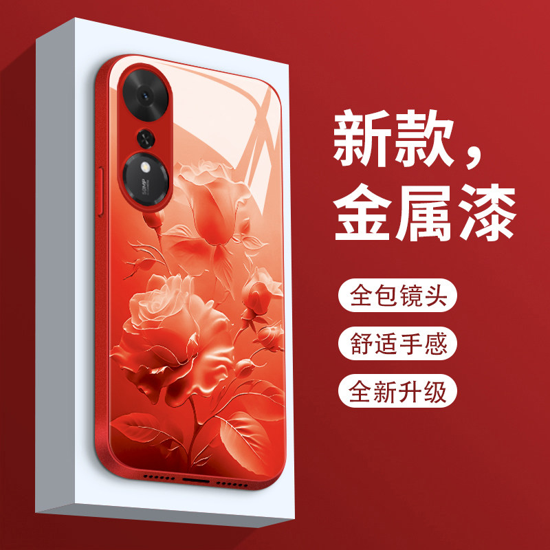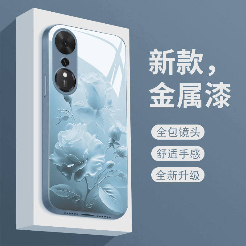 适用荣耀畅玩70plus手机壳雾色玫瑰CW70PLUS新款 液态玻璃保护套HONOR镜头全包防摔LOG一AN00潮牌简约创意女款