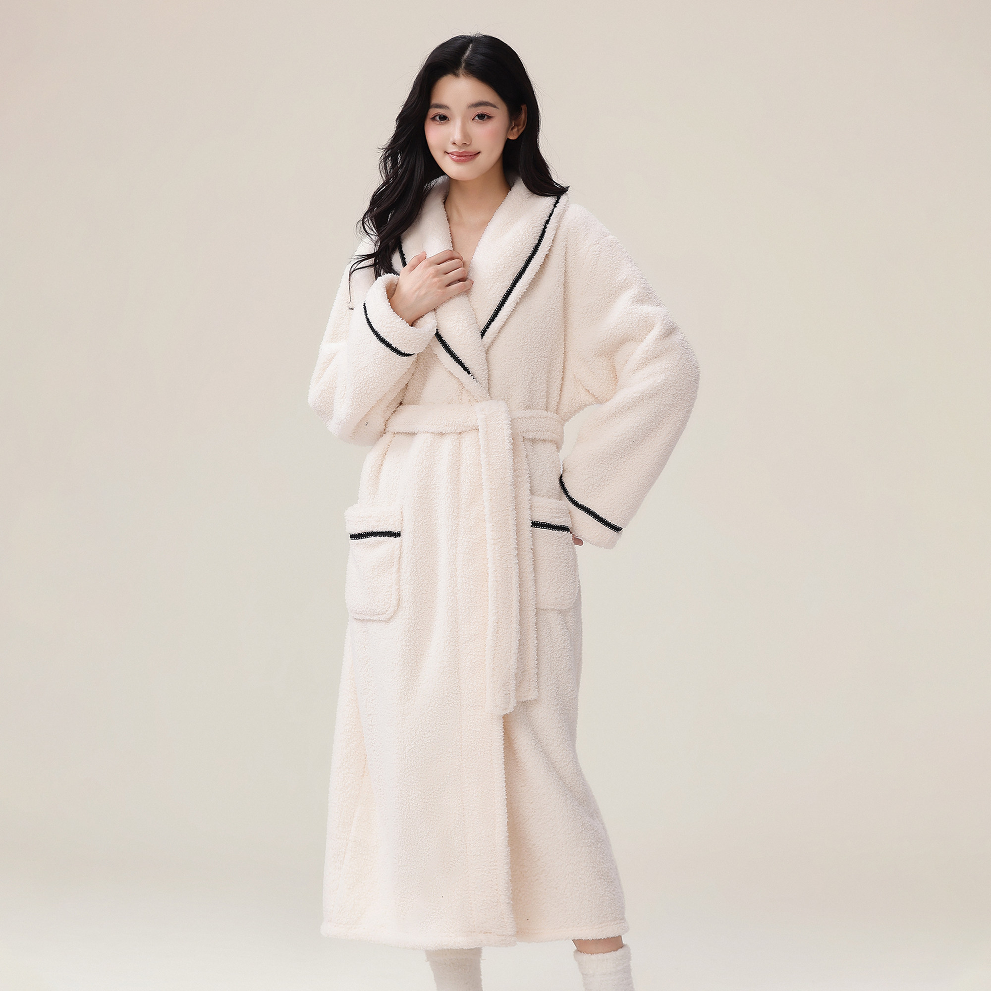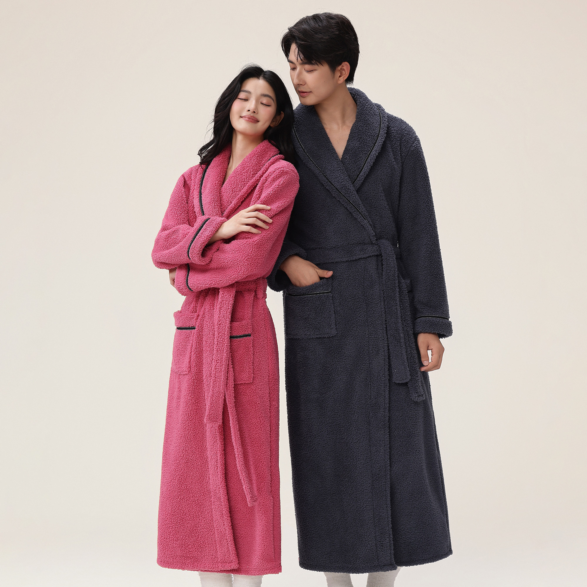 中长款 冬保暖睡衣家居服套装 睡袍毛绒浴袍加厚情侣款 三层加厚