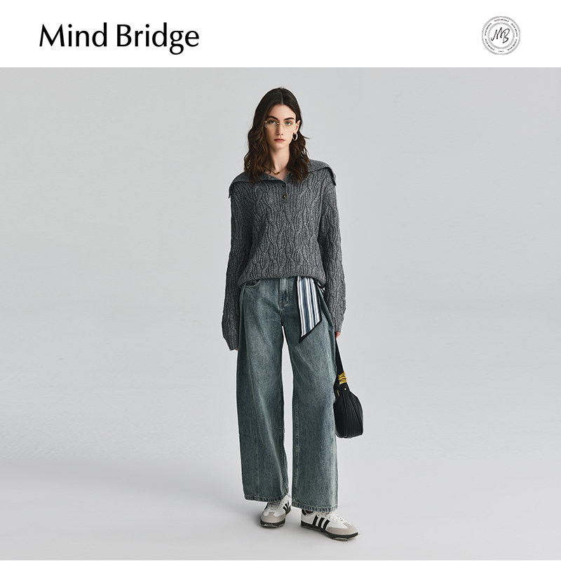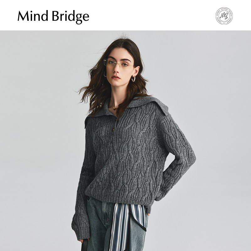 针织衫 Mind 2026春海军领时尚 绵羊毛 女士休闲复古毛衣 Bridge