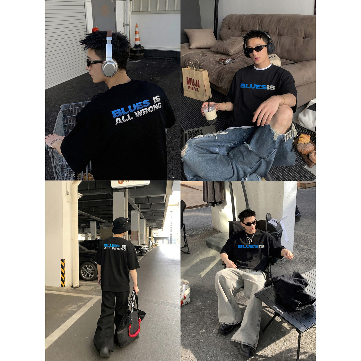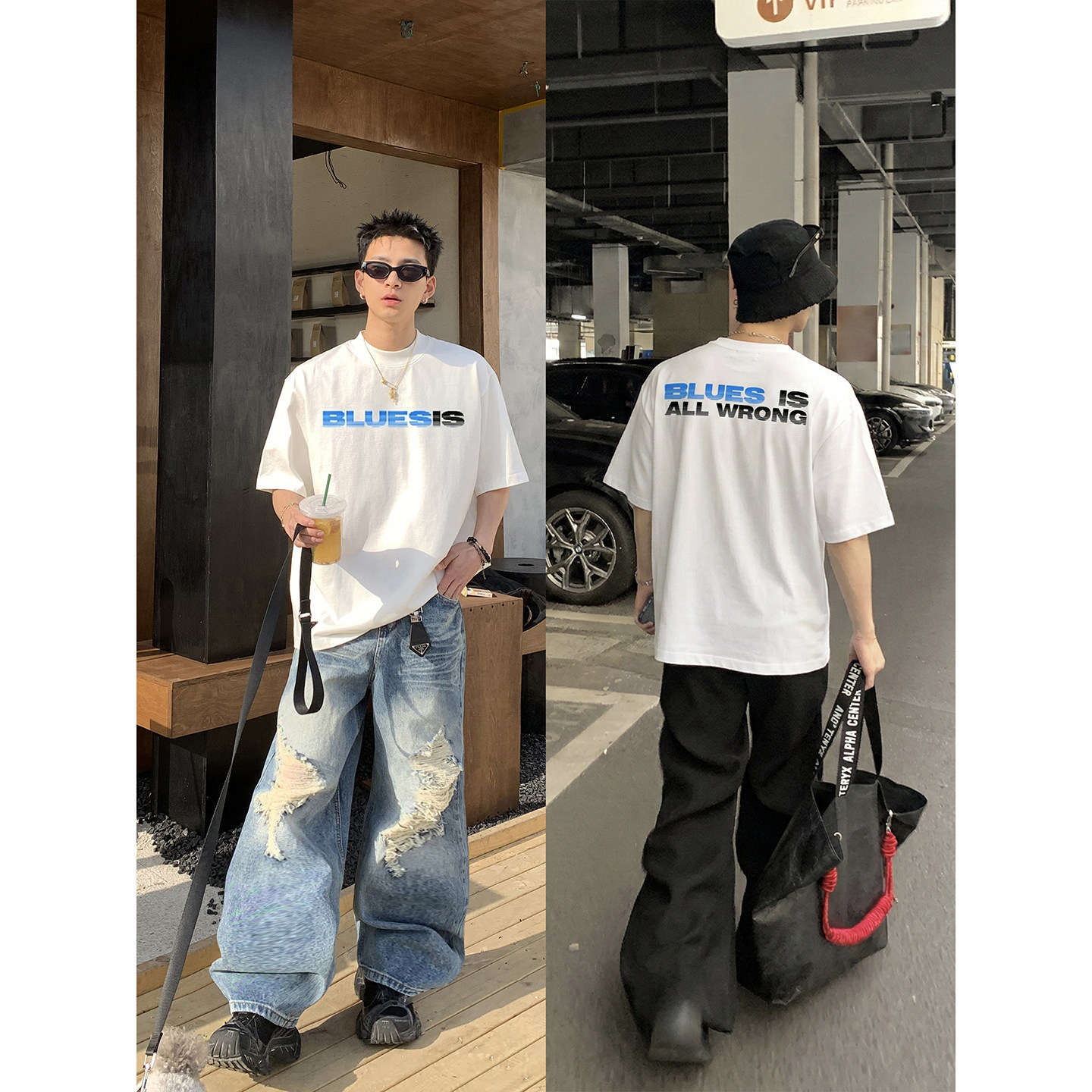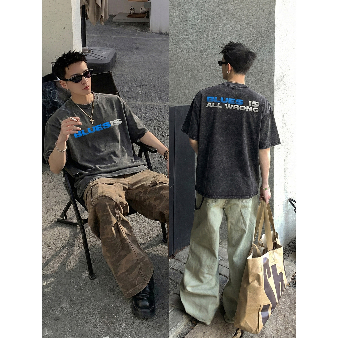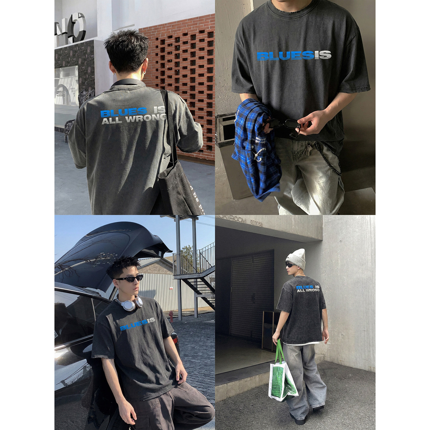 宽松潮牌T恤日常通勤百搭上衣女 男夏季 PLTH 复古字母印花水洗短袖