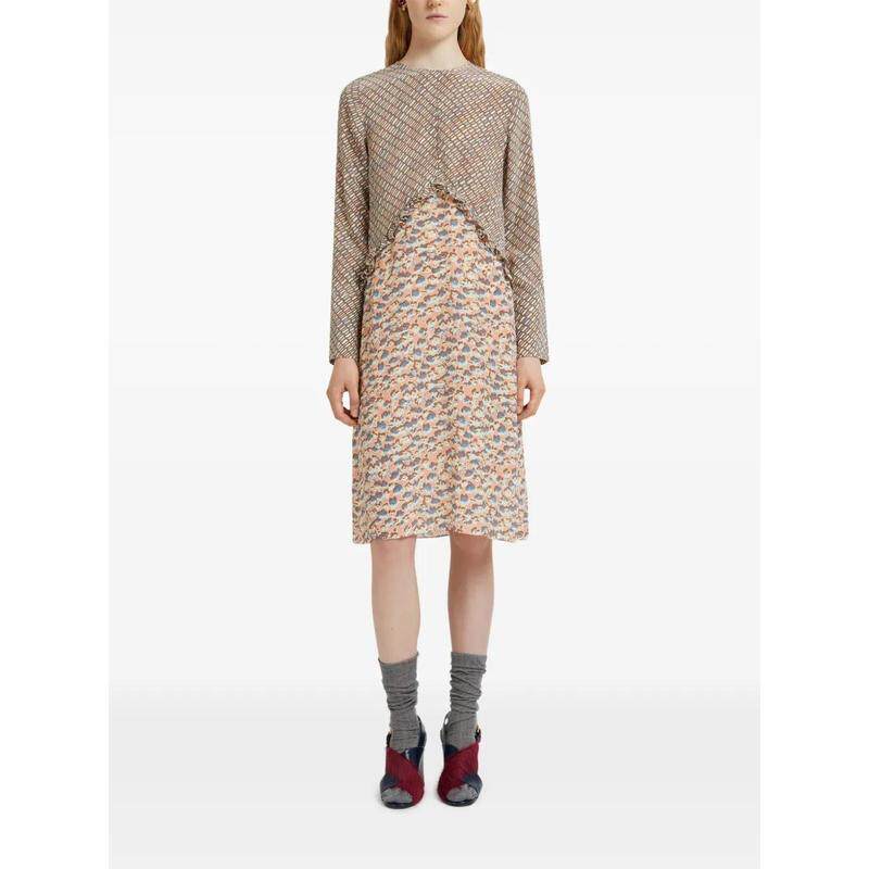 玛尼 DETAILING 女士 中长连衣裙 花朵图案皱褶 SS26 Marni