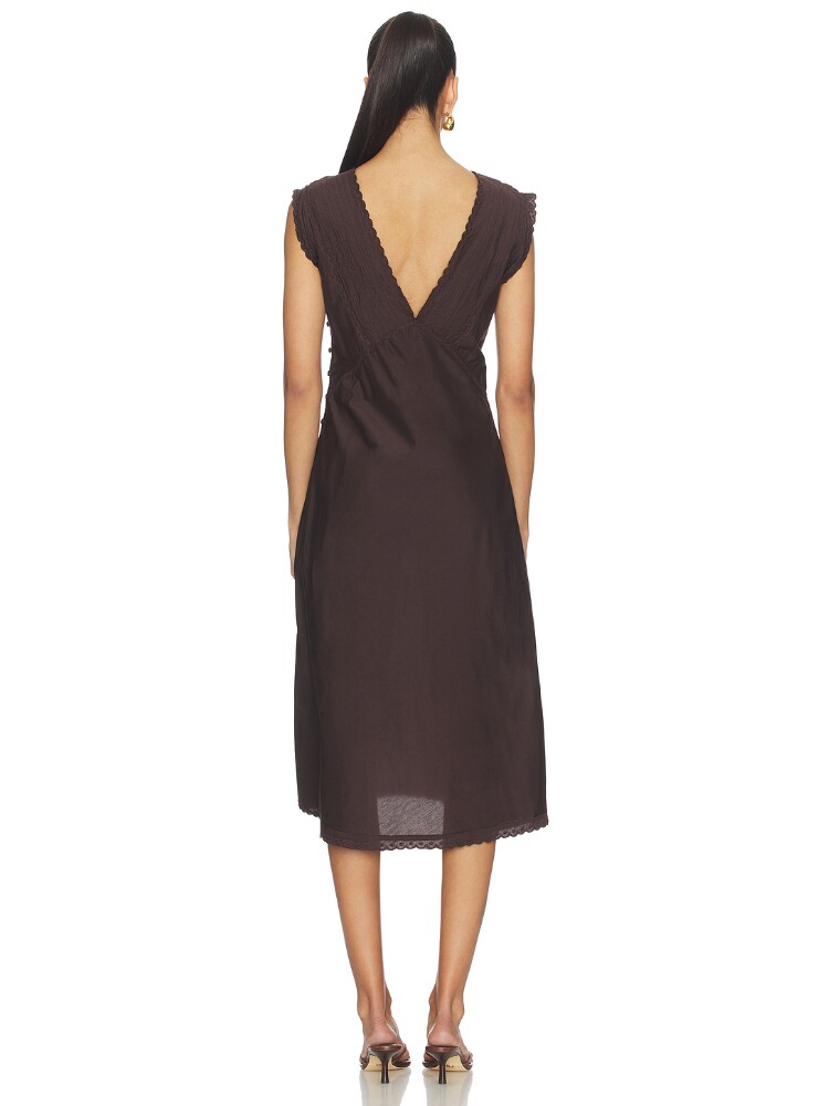 People深棕V领连衣裙蕾丝刺绣收腰中长裙REVOLVE Free 店铺主推