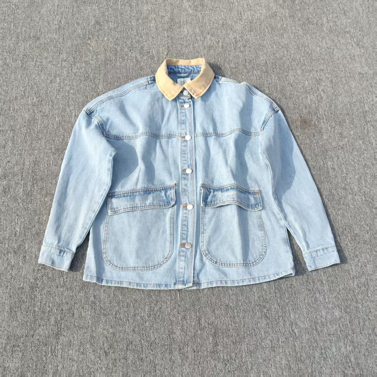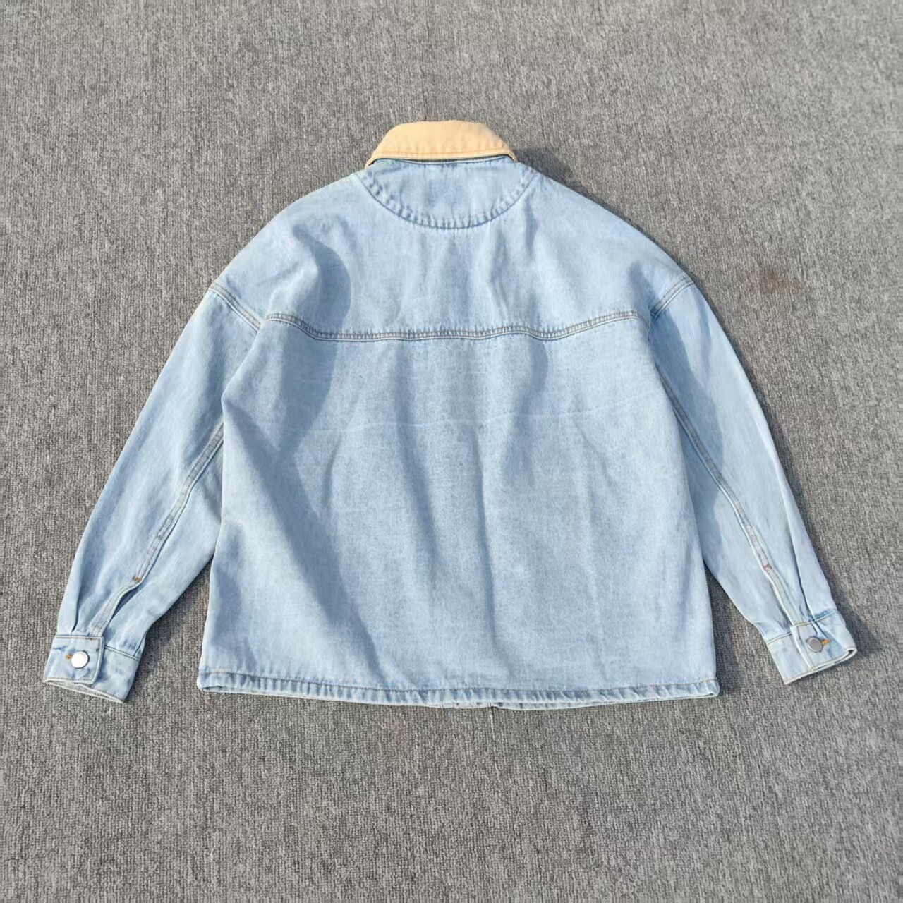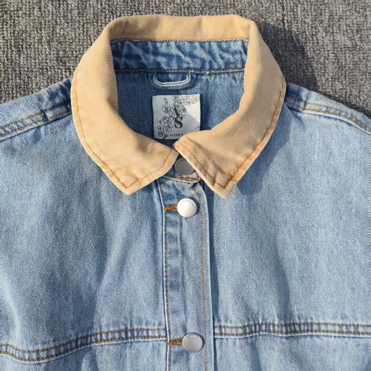 新款 复古翻领拼接牛仔外套春季 胖mm设计感休闲夹克上衣 女装 大码