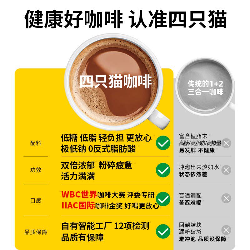 四只猫咖啡三合一速溶特浓咖啡速溶云南小粒咖啡袋装 提神官方正品