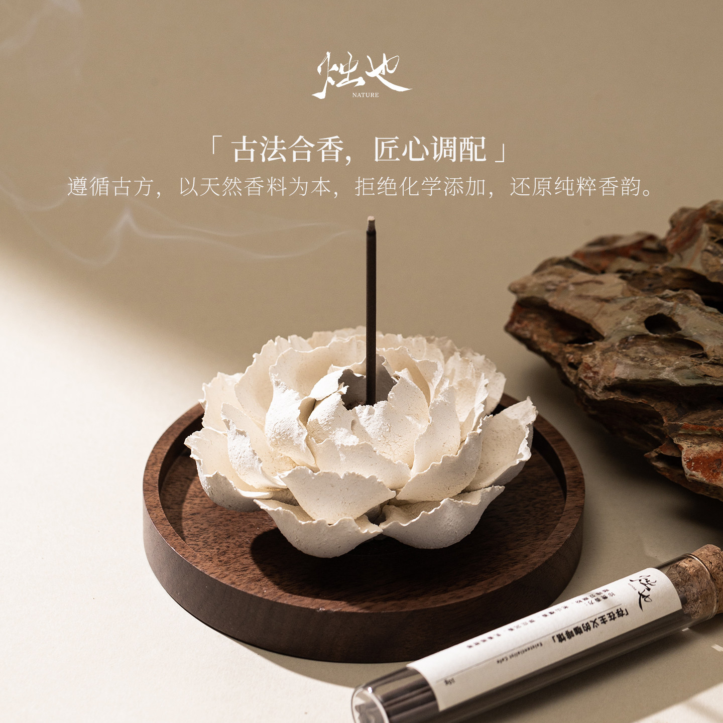侘寂风洞石创意线香香插香托香盘家用室内香薰高级感香座香器摆件