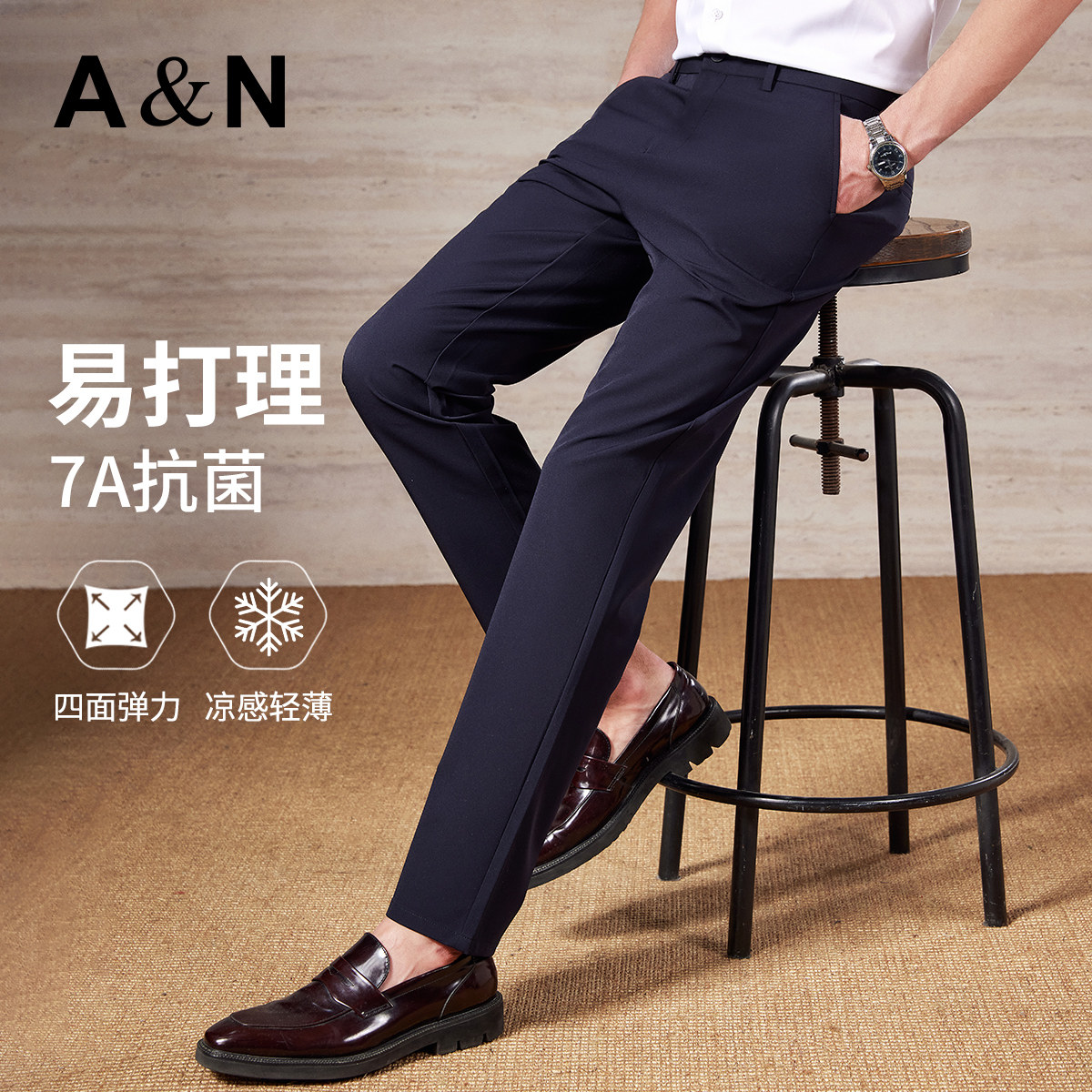 抗菌&凉感 长裤 AntonNeal夏薄款 男式 商务裤 舒适四面高弹休闲裤