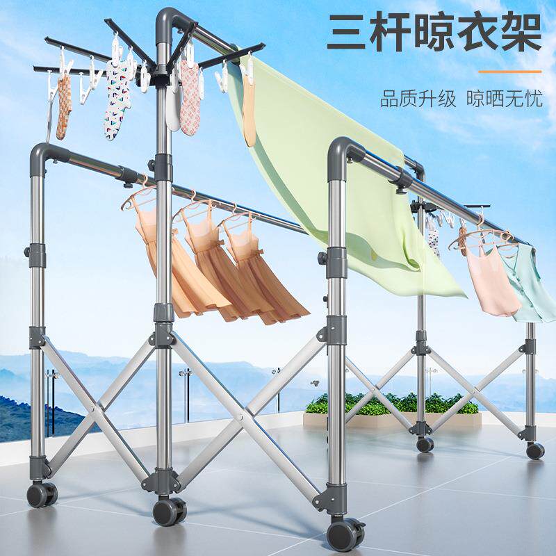新F5M7JS79品衣架落地折叠室移内外阳台家用伸晾缩晒衣钢服晒被子