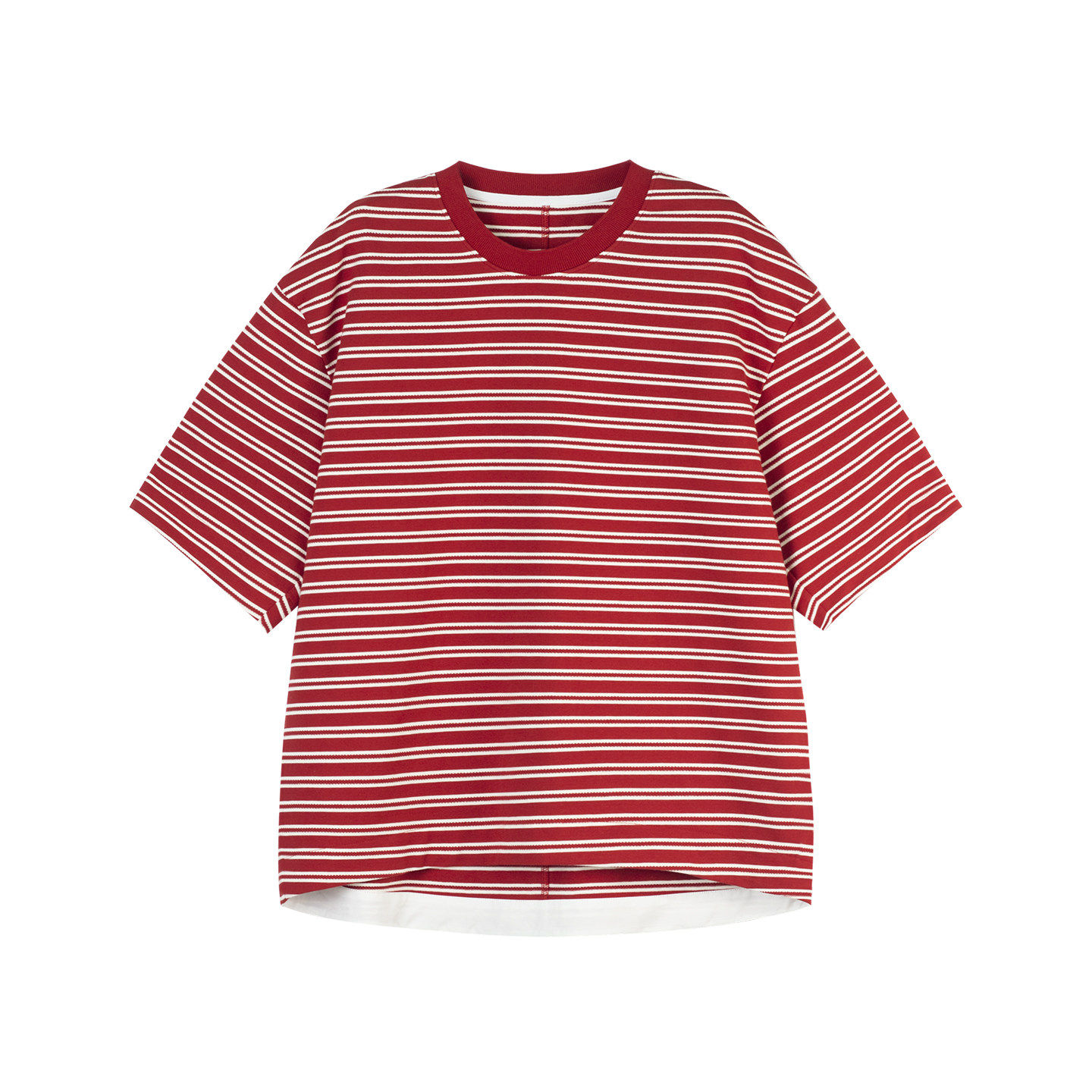定制女装 棉莫代尔条纹T恤宽松落肩拼接格纹假两件休闲上衣0663