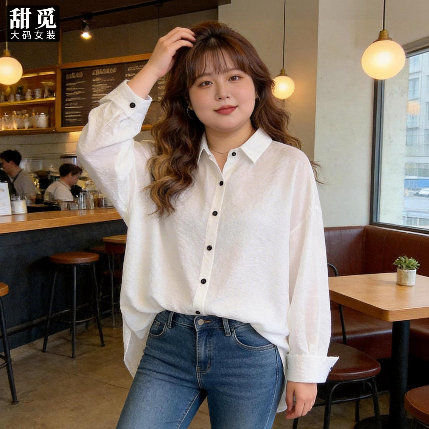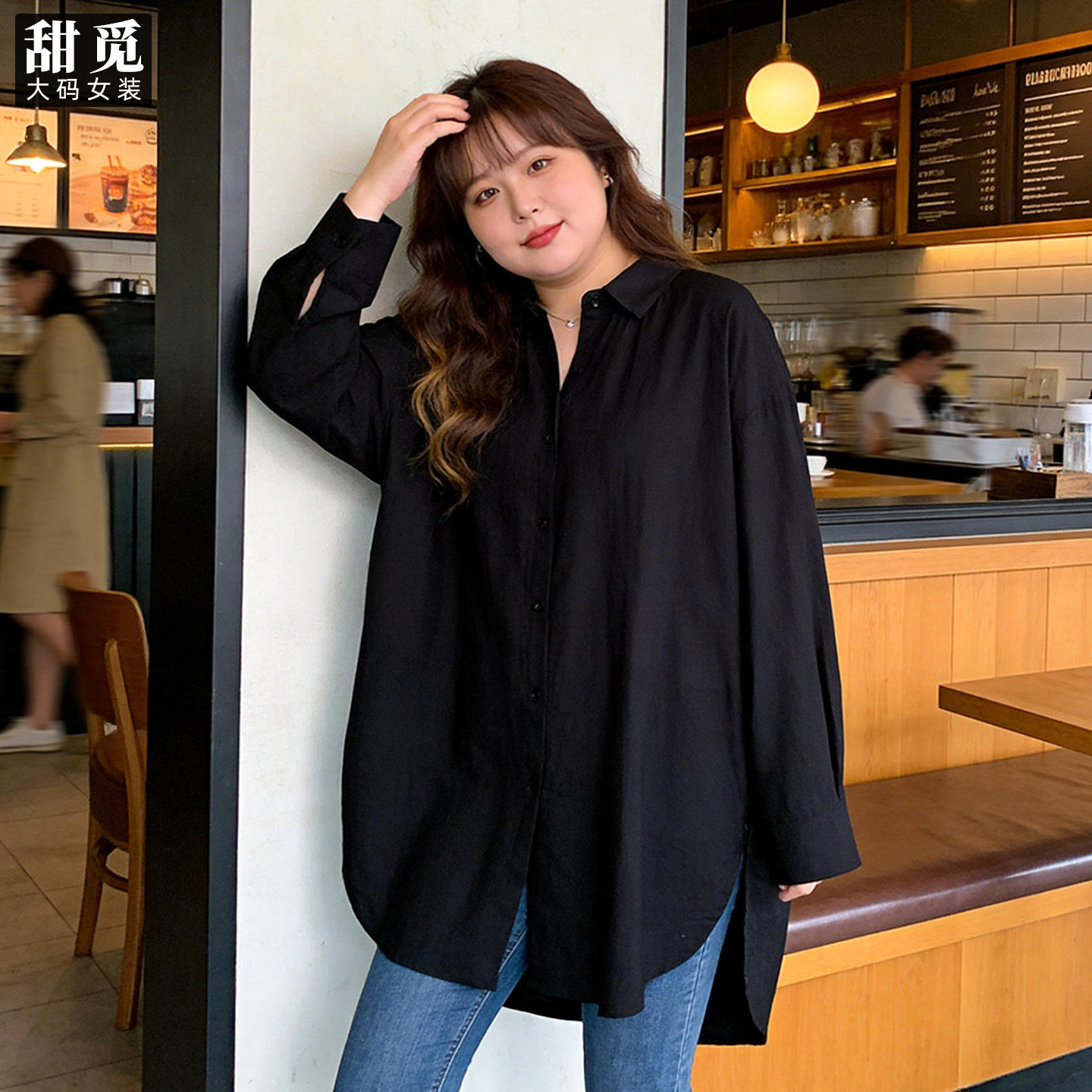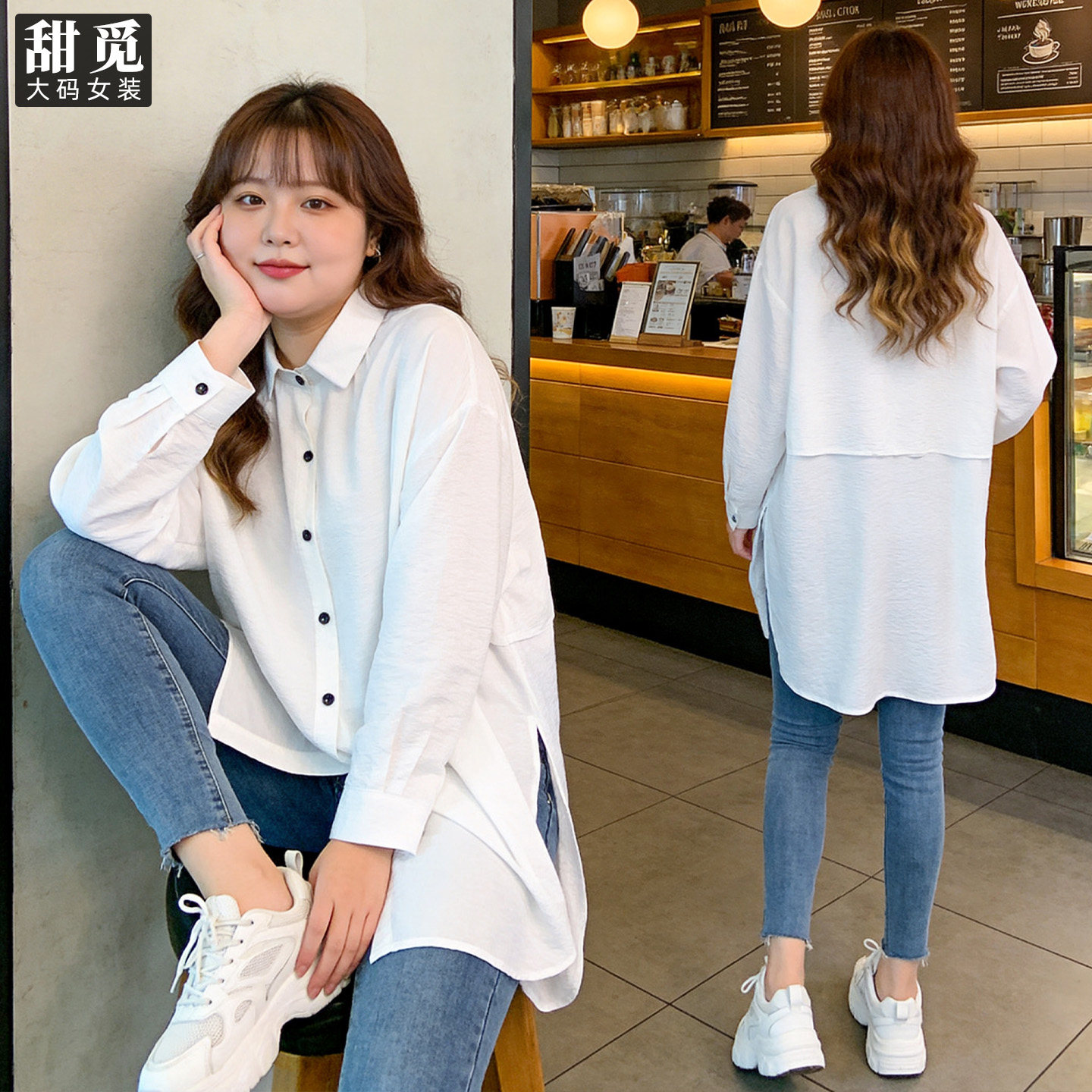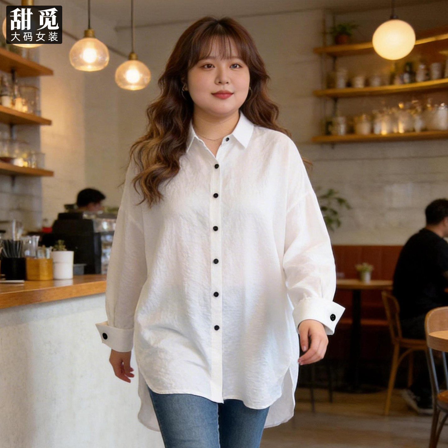女装 胖妹妹衬衫 春夏装 长款 胖mm260斤简约百搭宽松大版 甜觅特大码